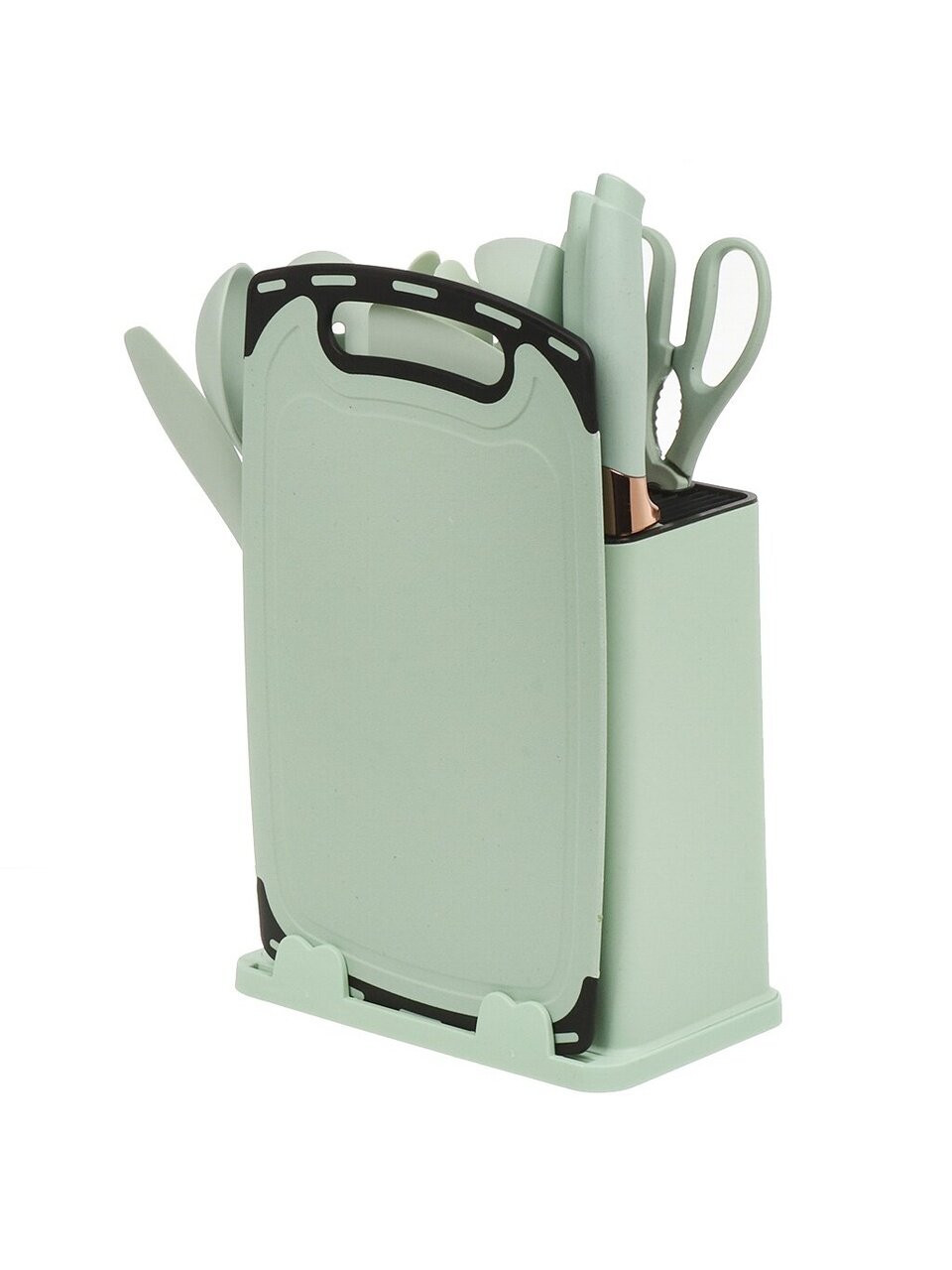 Вы можете приобрести «Набор кухонных принадлежностей 18 предметов, силикон, нержавеющая сталь, на подставке, с доской, зеленый, B030085» и другие товары в нашем интернет-магазине в Коврове по низким ценам и с бесплатным самовывозом.