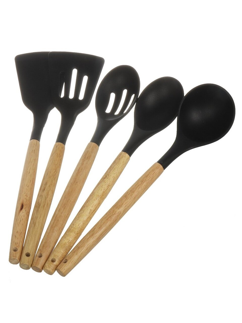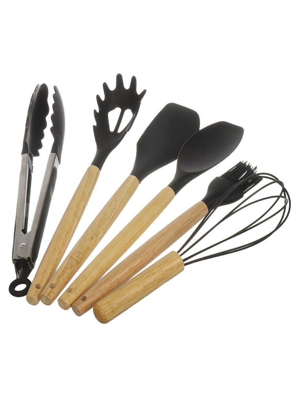 Погрузитесь в мир кулинарного искусства с набором кухонных принадлежностей, который станет настоящим помощником на кухне. Этот стильный и функциональный комплект из 18 предметов сочетает в себе элегантность черного цвета и надежность материалов, таких как силикон, нержавеющая сталь и бамбук. Набор не только облегчит процесс приготовления пищи, но и станет стильным дополнением к интерьеру кухни.