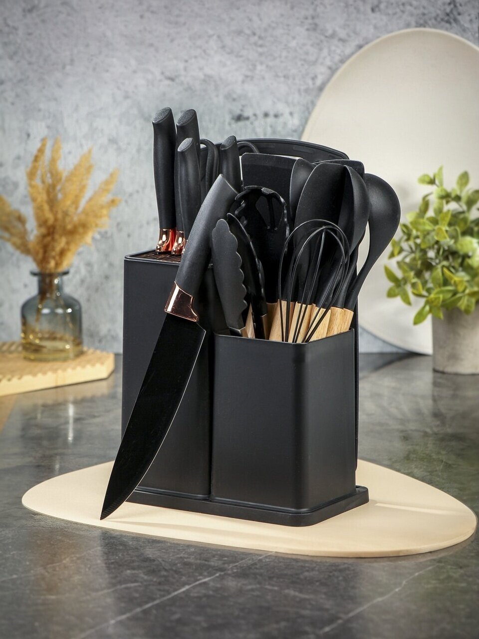 Выгода от покупки этого набора очевидна: он не только упрощает процесс приготовления пищи, но и экономит время, благодаря продуманной комплектации и удобной подставке. Каждый предмет набора выполнен с вниманием к деталям, что делает его незаменимым помощником на кухне. Отсутствие необходимости в частой замене кухонных принадлежностей благодаря их долговечности — это еще одна весомая причина для выбора данного комплекта. Этот набор станет отличным подарком для тех, кто ценит удобство и стиль в каждой детали.