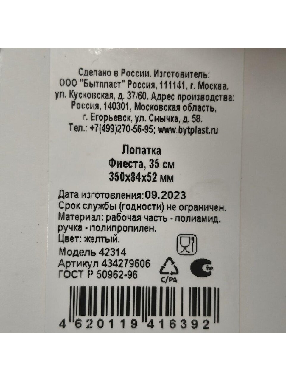 Вы можете приобрести «Лопатка кулинарная, пластик, 35 см, с прорезями, навеска, желтая, Бытпласт, Fiesta, 434279606» и другие товары в нашем интернет-магазине в Коврове по низким ценам и с бесплатным самовывозом.