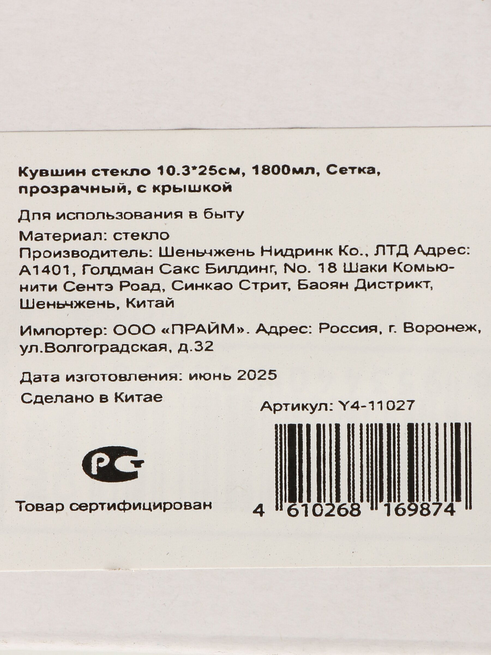 Кувшин стекло, 1.8 л, Сетка, прозрач, с крыш, Y4-11027