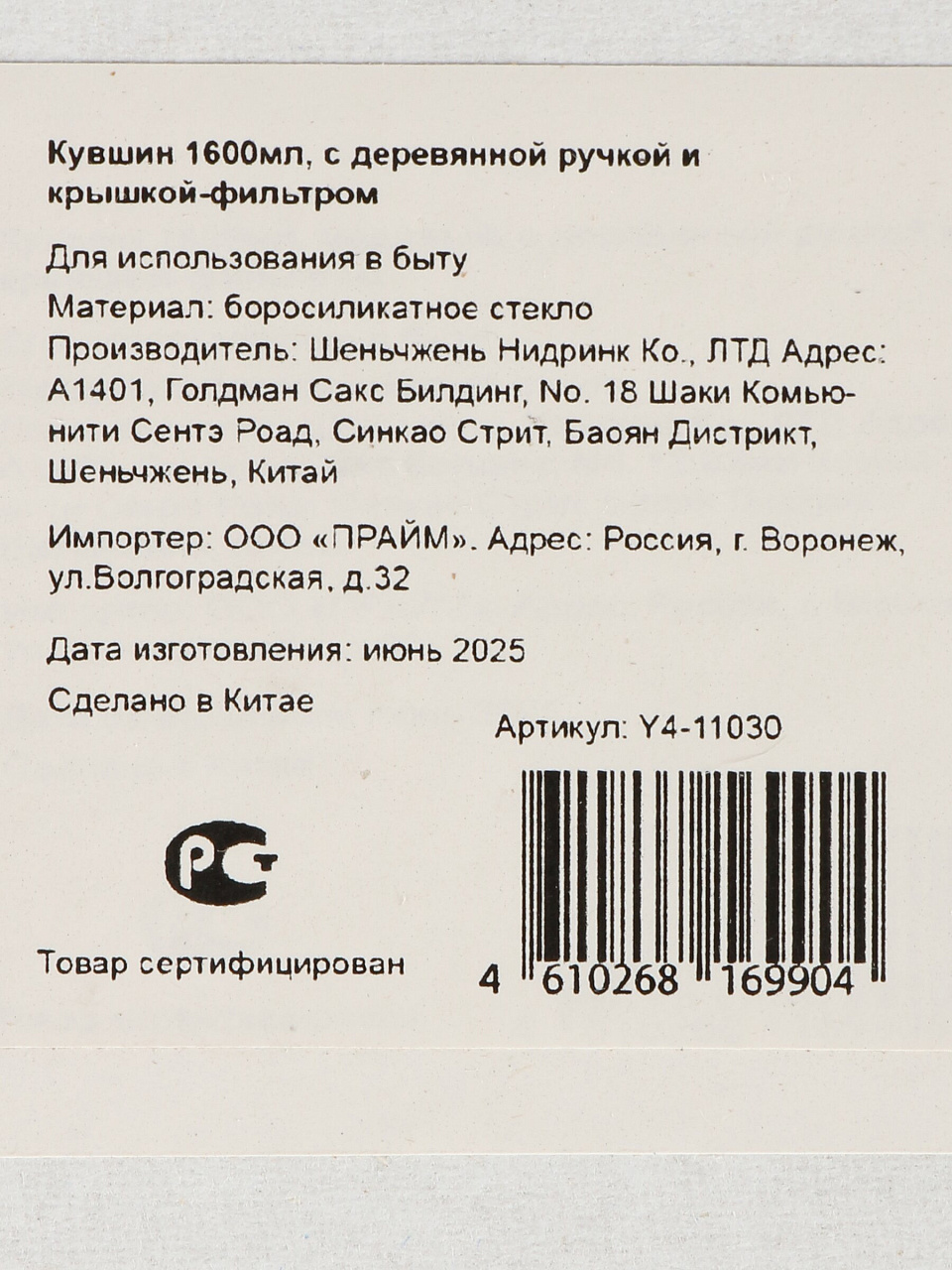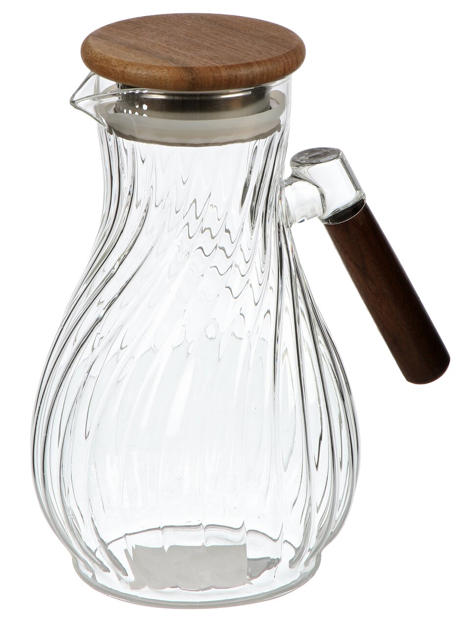 Кувшин боросиликатное стекло, 1.8 л, медовый, дерев ручка, крышка-фильтр, Y4-11030