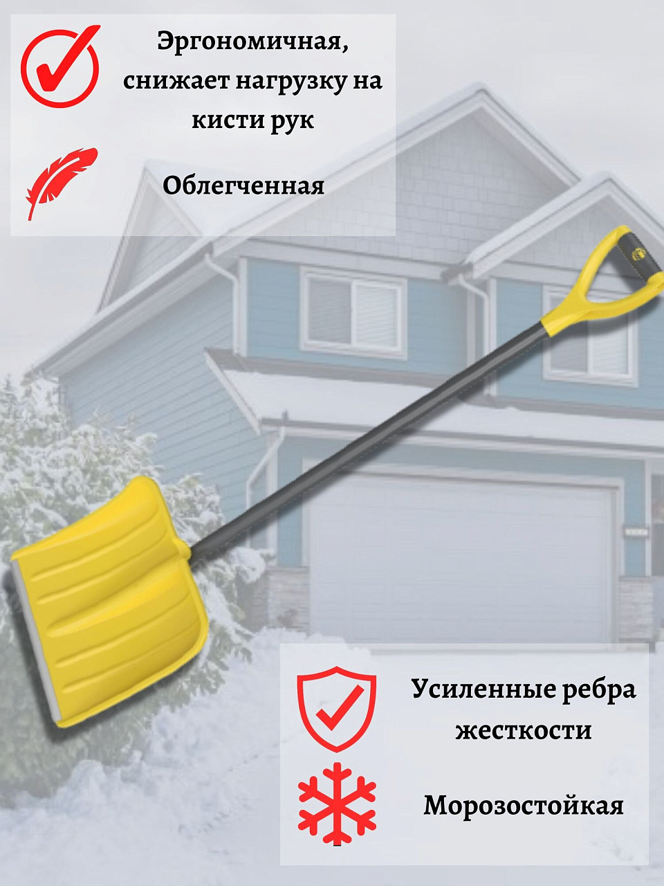 Применение: лёгкая снеговая лопата для расчистки снега перед домом или гаражом