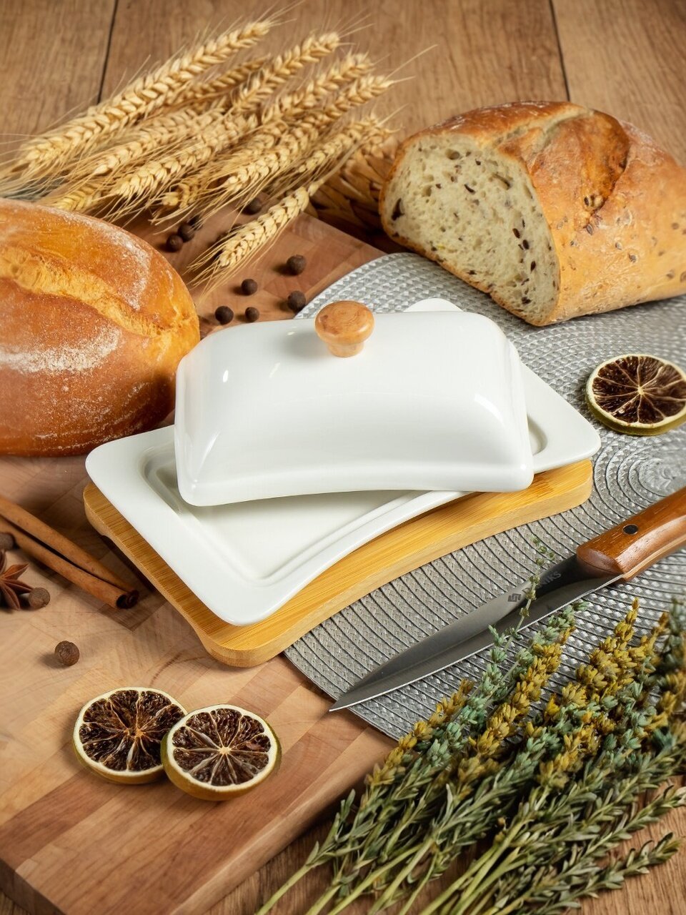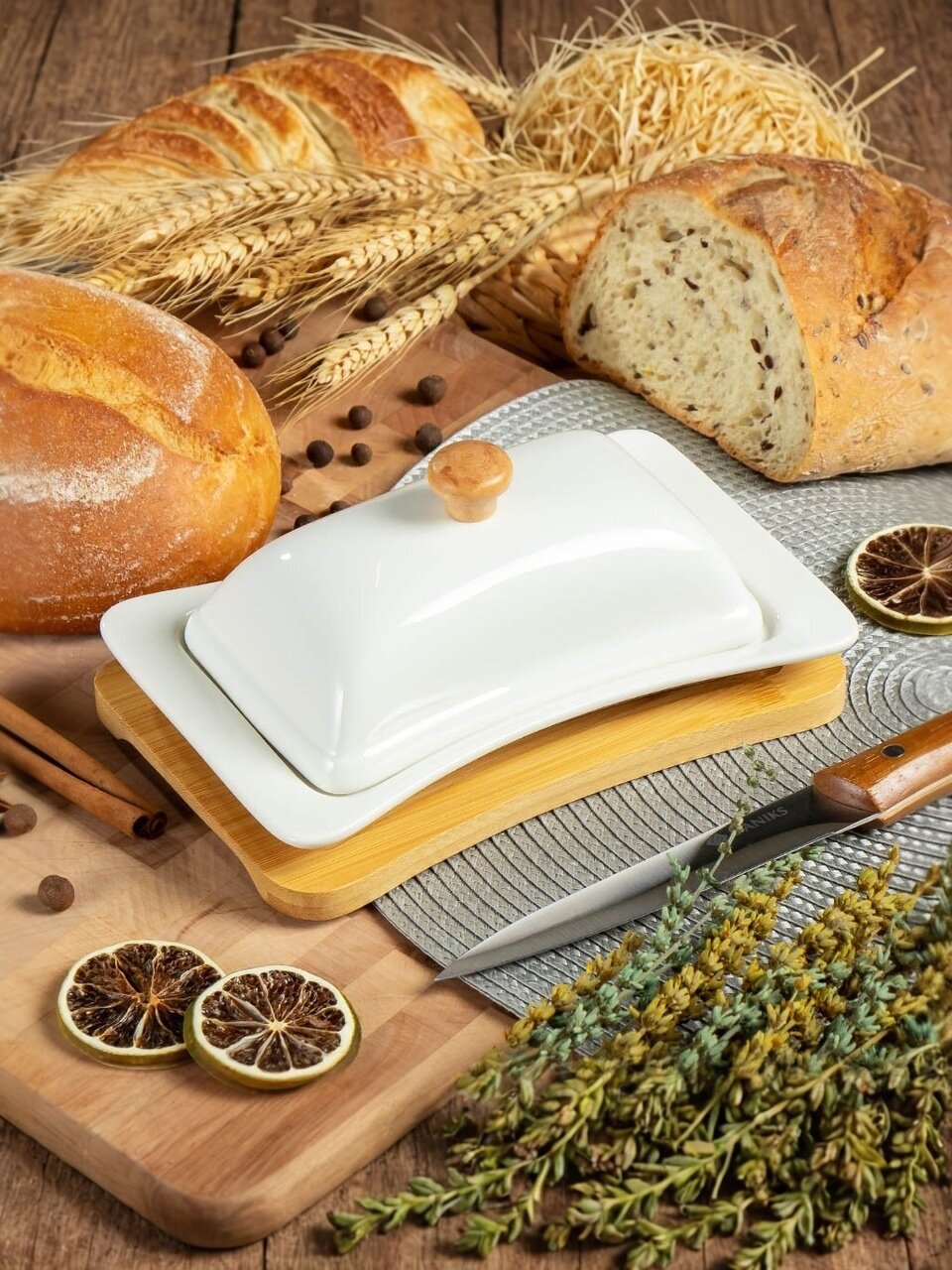 Вы можете приобрести «Масленка керамика, 18х12х9 см, с бамбуковой подставкой, белая, Y4-6617» и другие товары в нашем интернет-магазине в Борисоглебске по низким ценам и с бесплатным самовывозом.