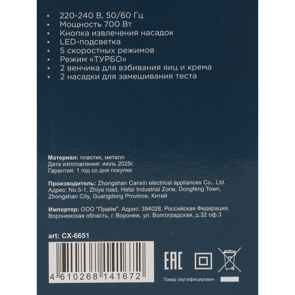 Миксер ручной, RION, CX-6651, 700 Вт, 5 скоростей, турбо режим, черный