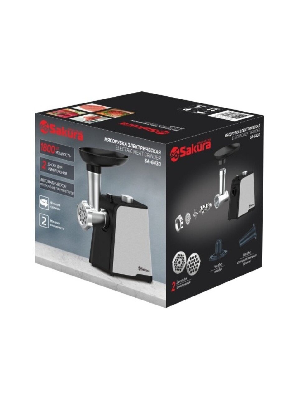 Вы можете приобрести «Мясорубка электрическая Sakura, SA-6430, 1800 Вт, реверс, 0.9 кг/мин, пластик, 2 насадки» и другие товары в нашем интернет-магазине в Липецке по низким ценам и с бесплатным самовывозом.