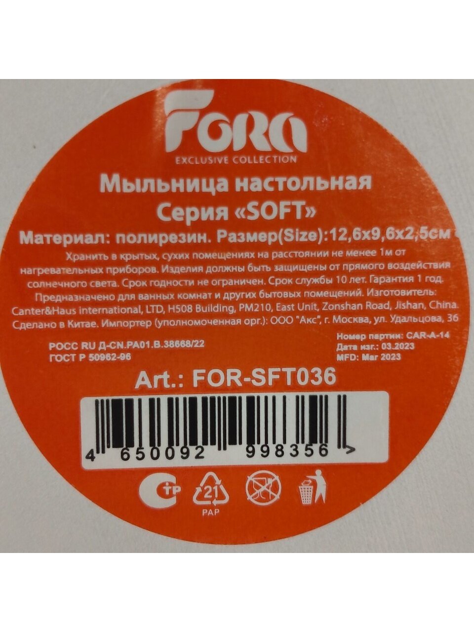 Вы можете приобрести «Мыльница настольная, Fora, Soft, полирезина, FOR-SFT036» и другие товары в нашем интернет-магазине в Орле по низким ценам и с бесплатным самовывозом.