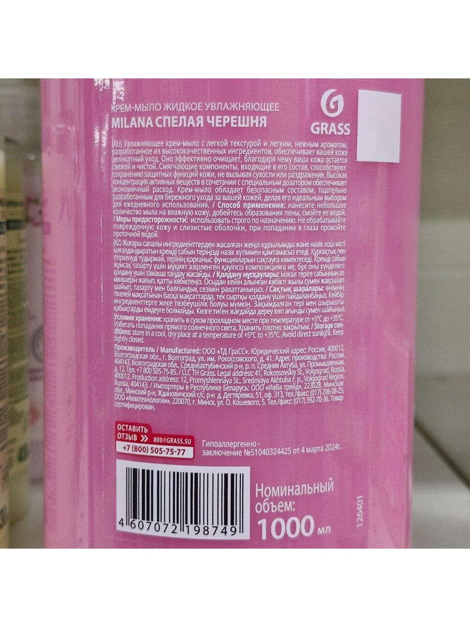 Вы можете приобрести «Мыло жидкое Grass, Milana Спелая черешня, 1 л» и другие товары в нашем интернет-магазине в Обнинске по низким ценам и с бесплатным самовывозом.