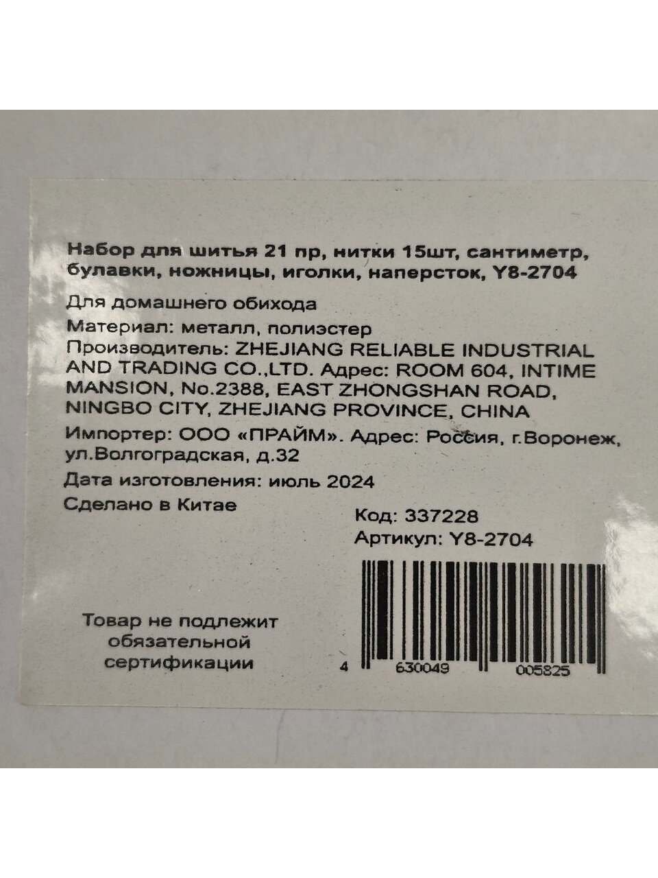Вы можете приобрести «Набор для шитья 21 предмет, нитки 15шт, сантиметр, булавки, ножницы, иголки, наперсток, Y8-2704» и другие товары в нашем интернет-магазине в Борисоглебске по низким ценам и с бесплатным самовывозом.