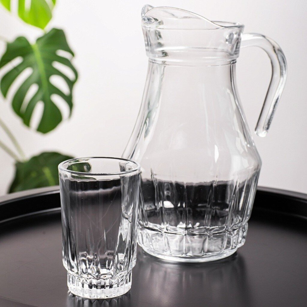 Стекло не впитывает запахи, легко очищается, а удобный объём кувшина и количество стаканов позволяют обслужить компанию гостей без дополнительных ёмкостей.