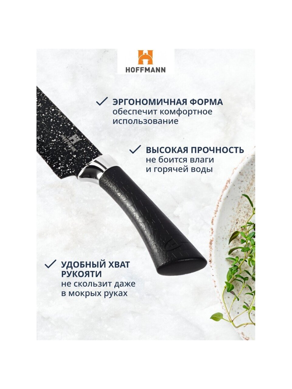 Преимущества Hoffmann — это гарантия надежности, долговечности и эстетики. Выгода покупки заключается в том, что с помощью одного набора можно выполнять широкий спектр задач, экономя время и силы при приготовлении пищи. Не потребуется искать дополнительные инструменты — все необходимое уже собрано в одном комплекте. Качественные ножи — залог аккуратной и быстрой работы на кухне. Откройте для себя удобство и стиль с Hoffmann НМ 6643 и создайте атмосферу уюта и порядка на кухне.