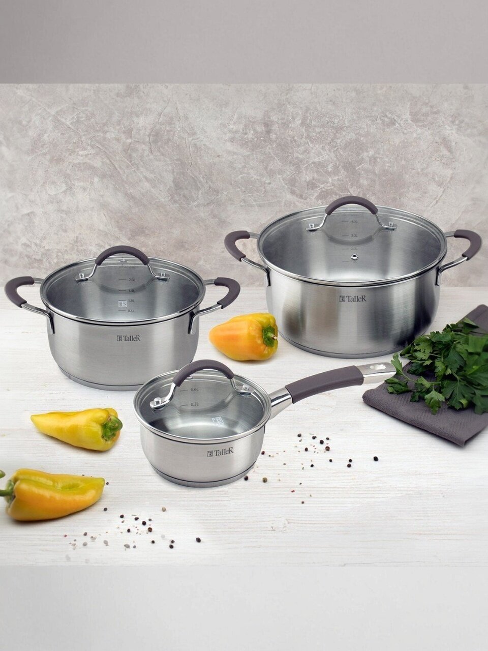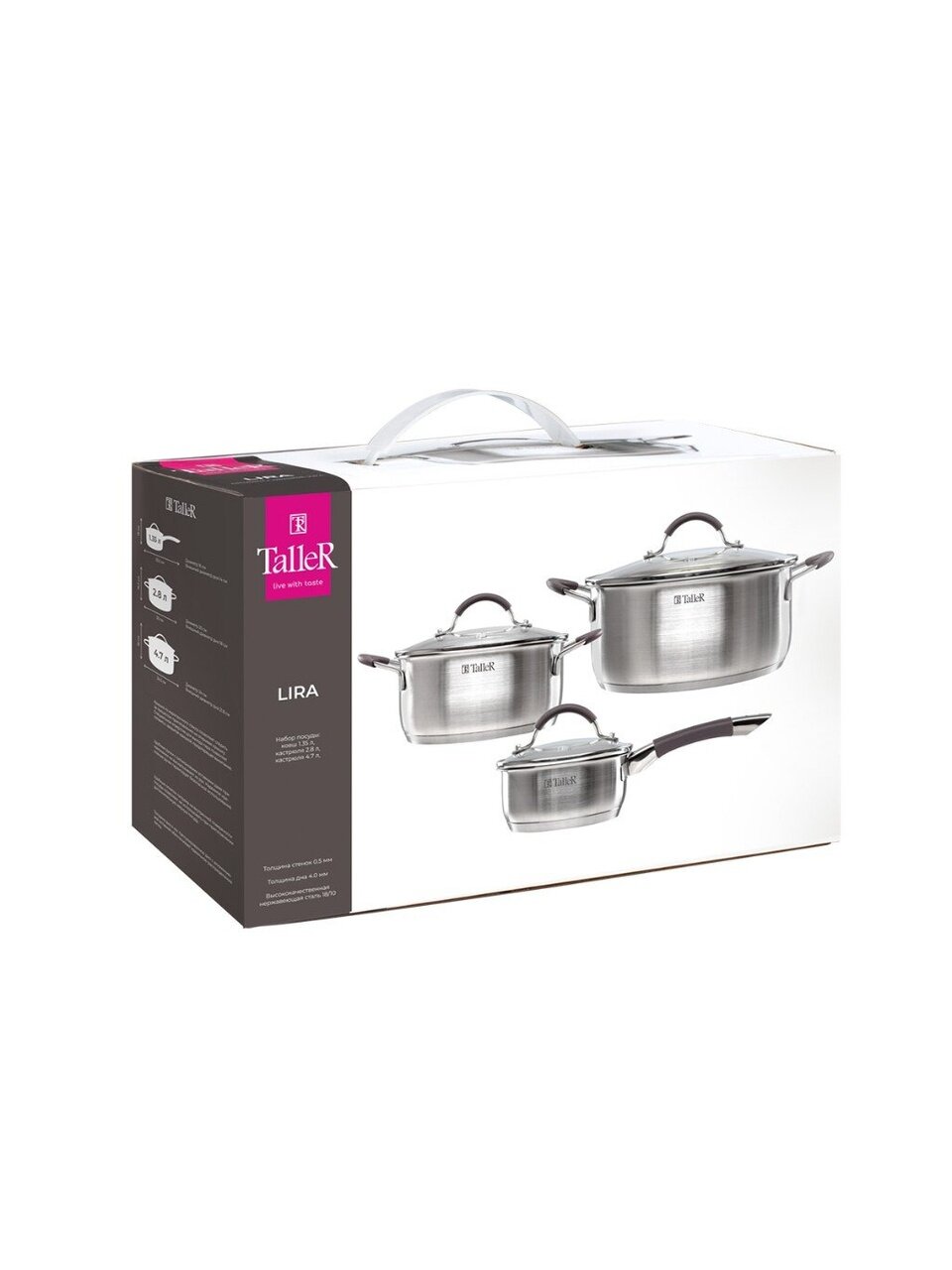 Набор посуды Taller Лира 11025: премиум-сталь, 3 предмета для индукции и любых плит — идеальный выбор для дома и дачи