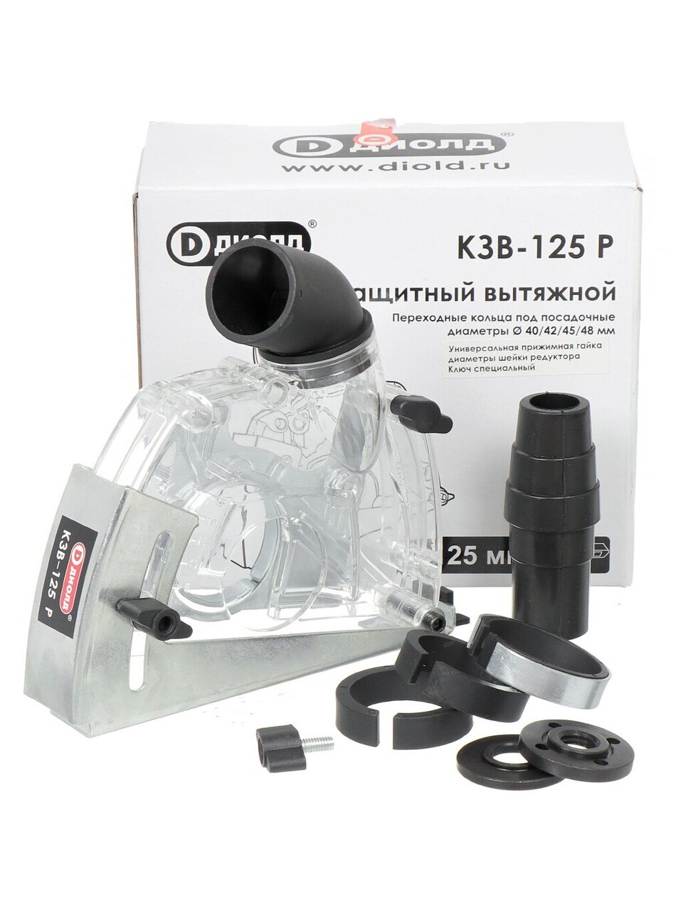 Легкая и удобная конструкция кожуха для УШМ Диолд КЗВ-125 Р не займет много места среди Ваших инструментов, но зато привнесет огромные преимущества в процесс обработки материалов. Работать с ним удобно и комфортно, ведь теперь вся пыль будет уходить в специальный пылесос, не доставляя Вам никаких неудобств.