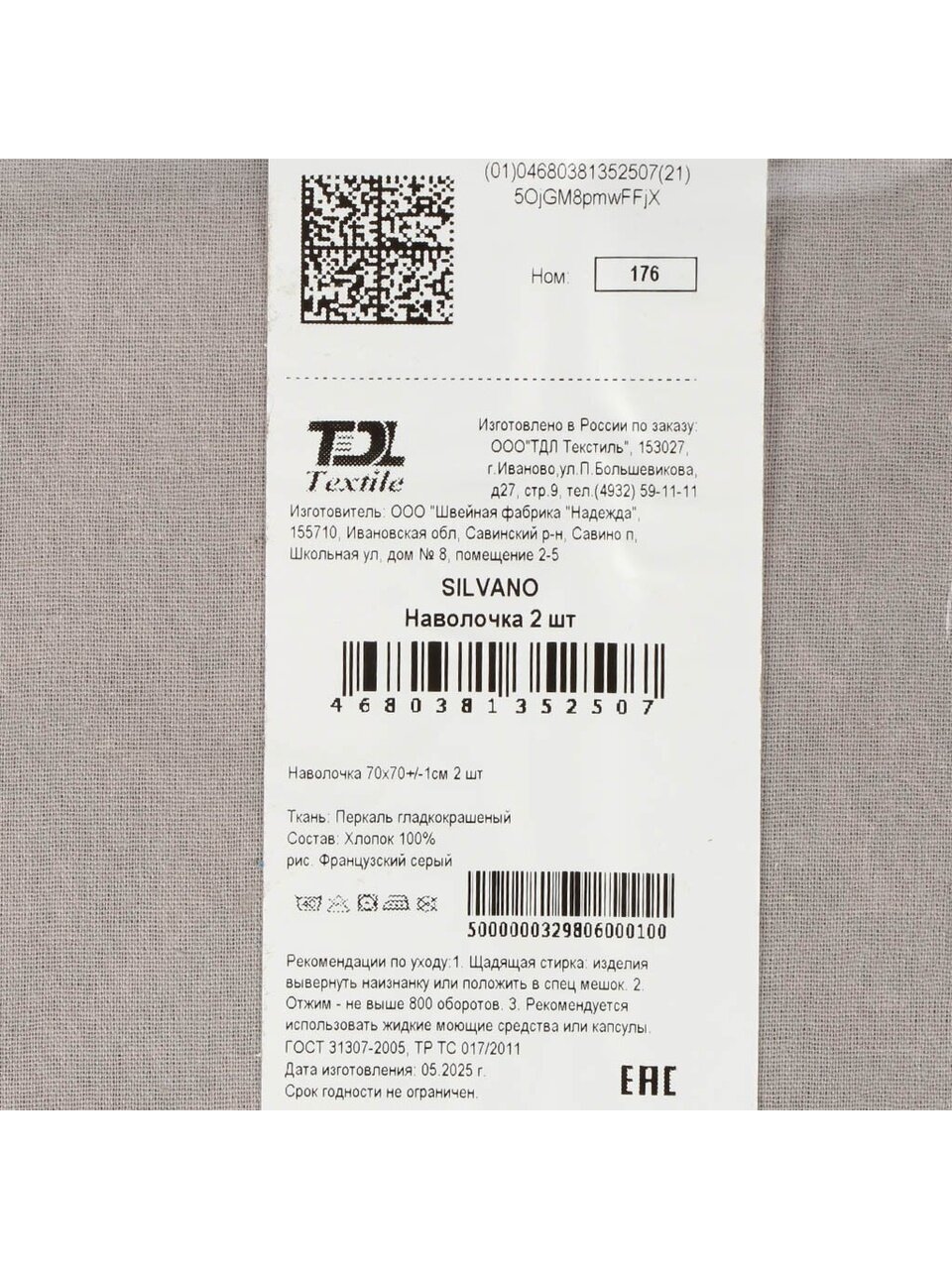 Наволочка 2 шт, Silvano, Французский серый, перкаль, 100% хлопок, 50 х 70 см, 110 г/м2 - фото 1 от пользователя