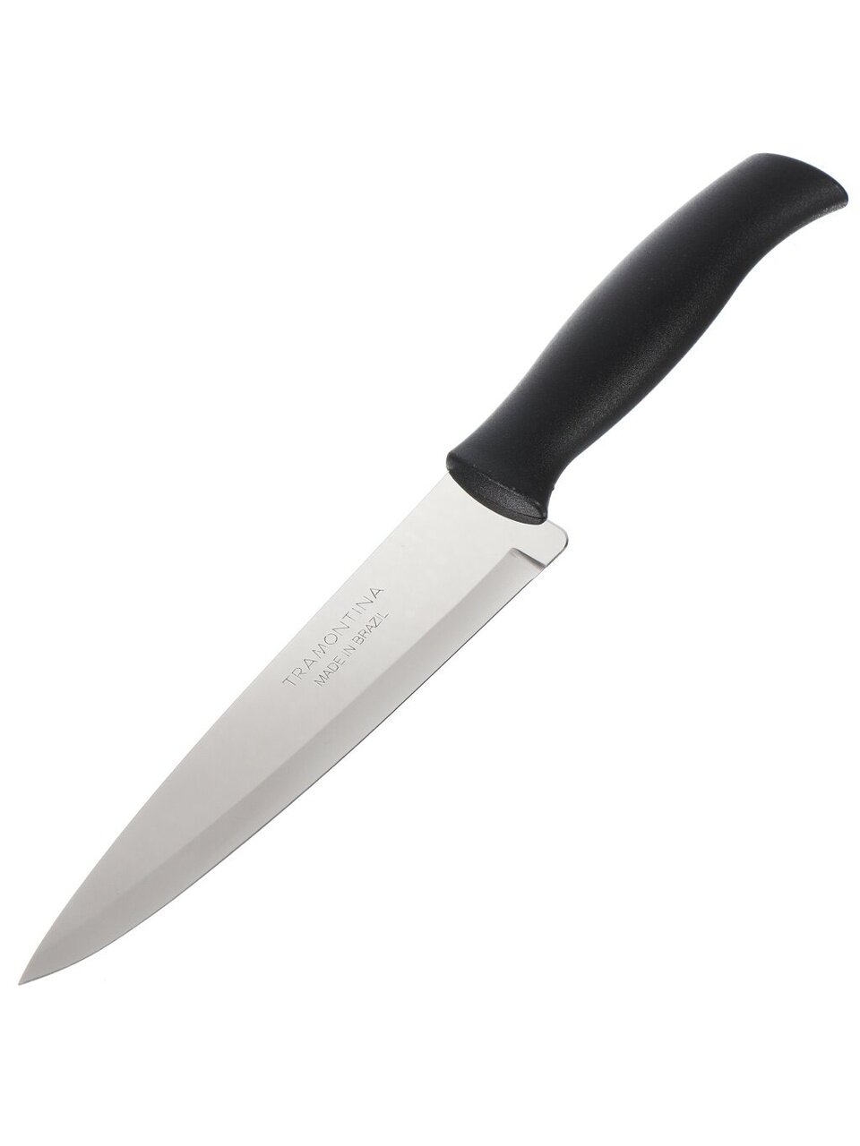 Нож Tramontina изготовлен из высококачественной нержавеющей стали, что делает его идеальным выбором для тех, кто ценит качество и стиль на своей кухне. Этот нож станет незаменимым помощником в готовке разнообразных блюд, обеспечивая точное и аккуратное нарезание ингредиентов. Нож будет надёжным компаньоном в кулинарных экспериментах и будет радовать вас своей эффективностью и элегантным дизайном на протяжении многих лет.