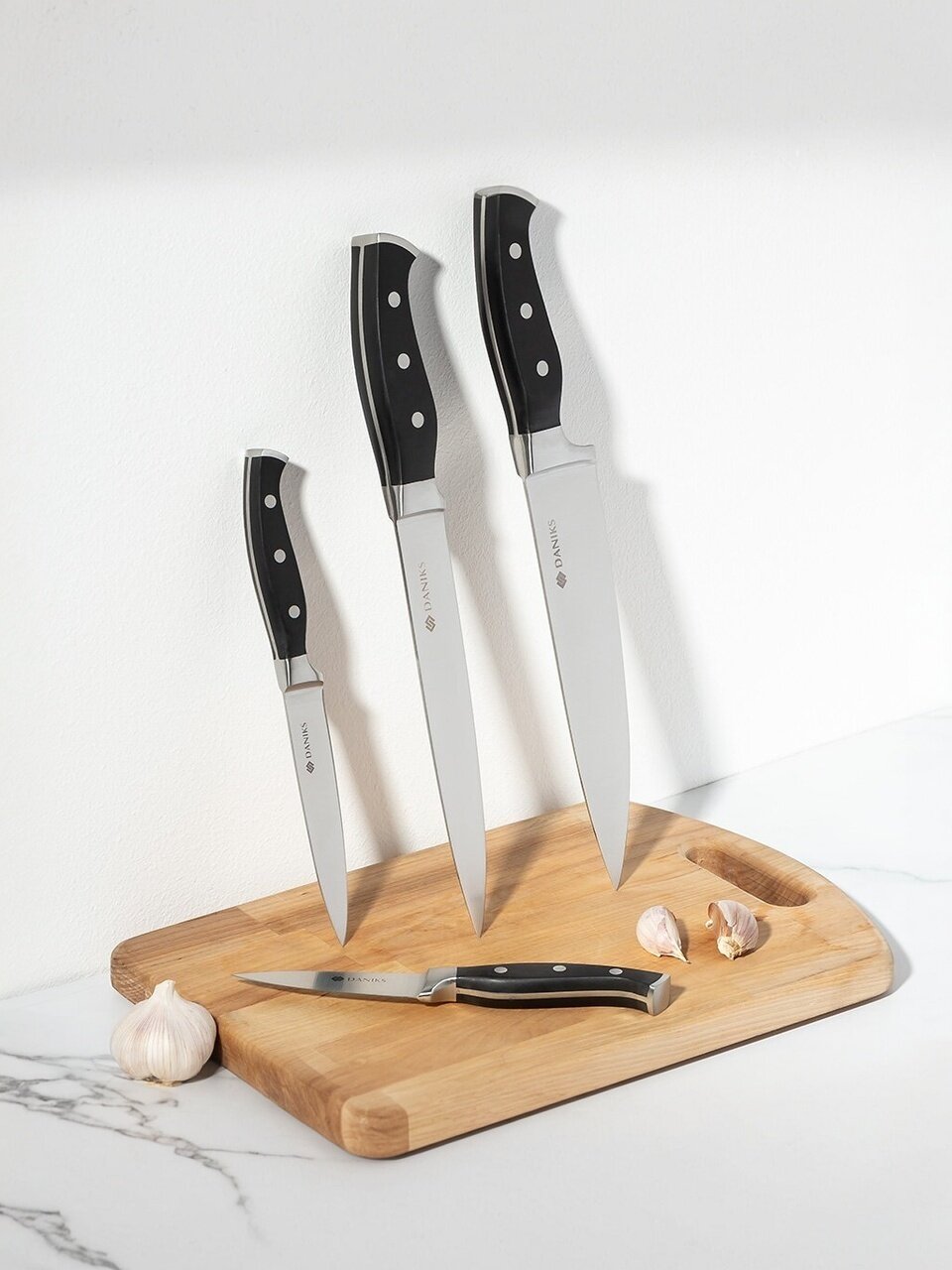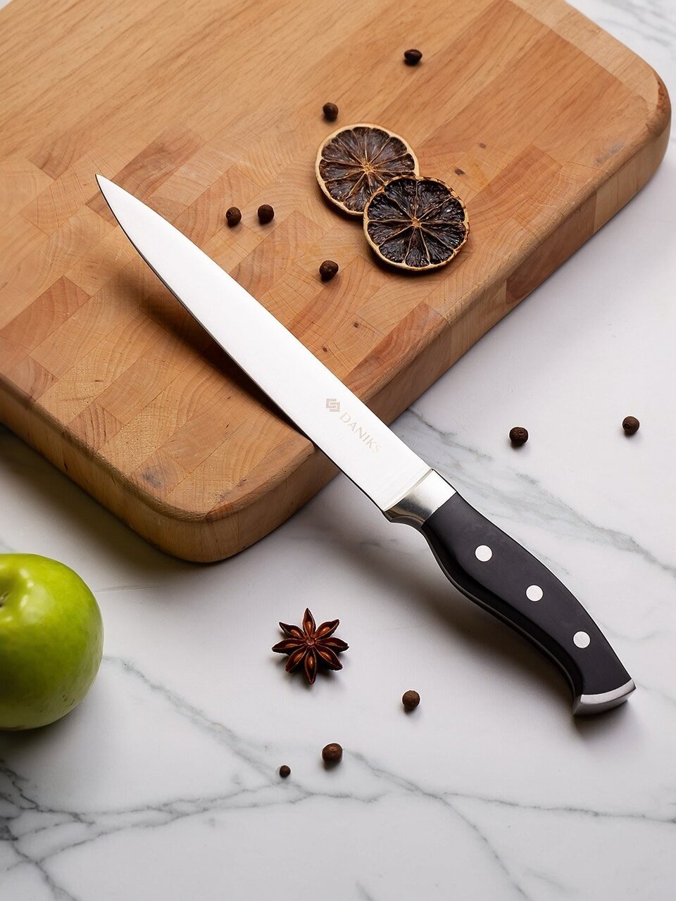 Выбирая нож Daniks Reference, вы получаете изделие, которое сочетает в себе высокие стандарты качества и доступную цену. Этот нож станет отличным выбором как для профессиональных поваров, так и для любителей кулинарии, стремящихся к совершенству в каждом блюде. Оцените все преимущества ножа Daniks Reference и сделайте процесс приготовления пищи более комфортным и приятным!