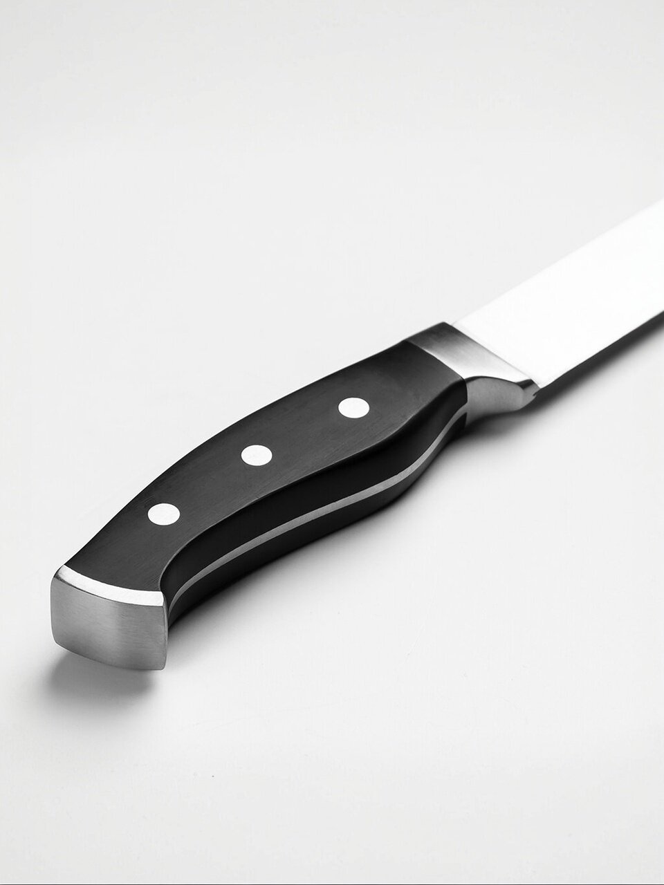- универсальность: 20-сантиметровое лезвие подходит для нарезки различных продуктов;