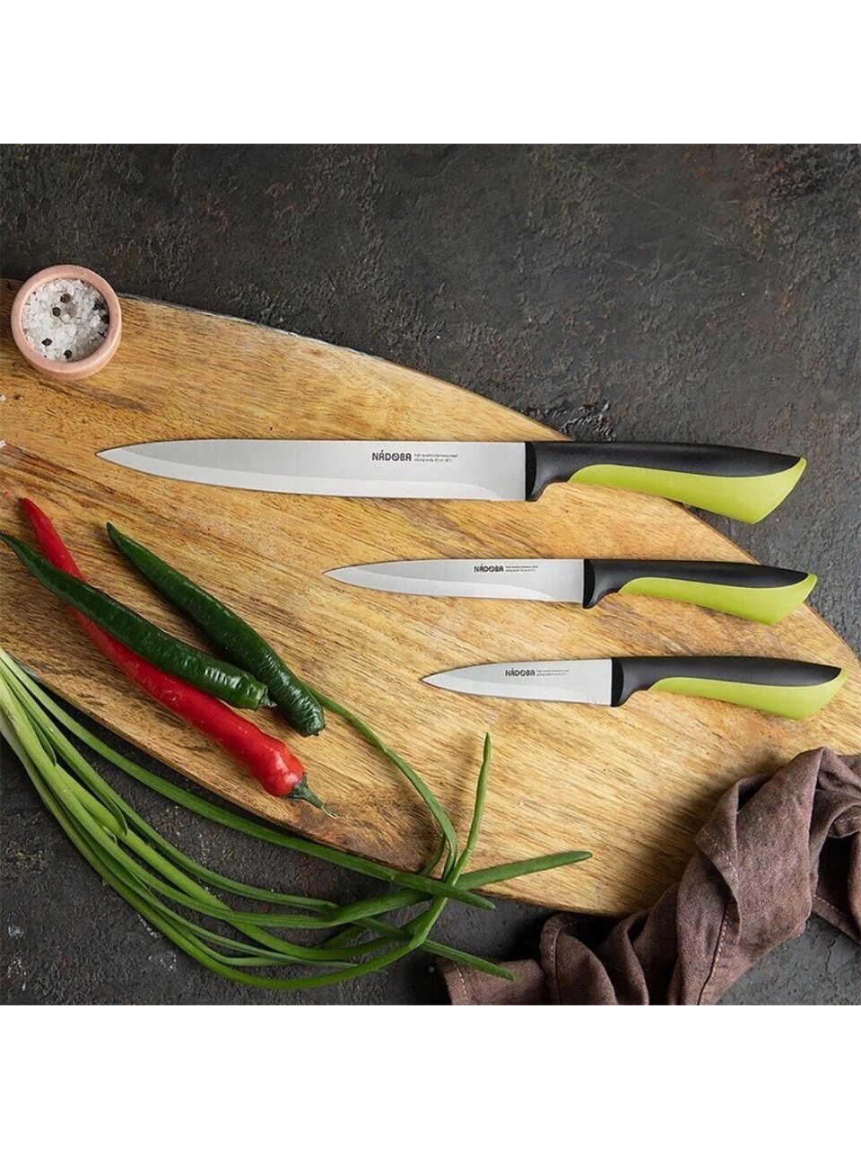Нож Nadoba Сантоку Haruto изготовлен из высококачественной нержавеющей стали, которая обеспечивает долговечность и остроту лезвия. Благодаря удобной ручке из прочных материалов работать с этим ножом становится ещё приятнее и комфортнее. Японский дизайн ножа Сантоку Haruto сочетает в себе традиции и инновации, создавая неповторимый стиль, который станет украшением вашей кухни. Не упустите возможность приобрести этот великолепный нож и добавить изысканности своим кулинарным творениям.