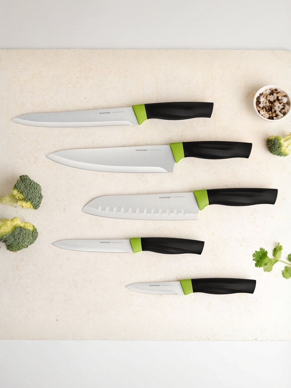 Представляем универсальный кухонный нож Nadoba Olivia, который станет незаменимым помощником на любой кухне. Изготовленный из высококачественной нержавеющей стали, он сочетает в себе надежность и практичность. Длина лезвия 12.5 см позволяет легко справляться с различными задачами, а пластиковая рукоятка обеспечивает комфортное использование.