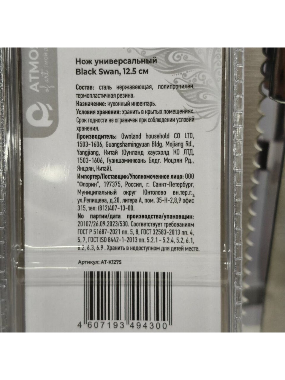 Вы можете приобрести «Нож кухонный Atmosphere, Black swan, универсальный, нержавеющая сталь, 12.5 см, рукоятка пластик, AT-K1275» и другие товары в нашем интернет-магазине в Армавире по низким ценам и с бесплатным самовывозом.