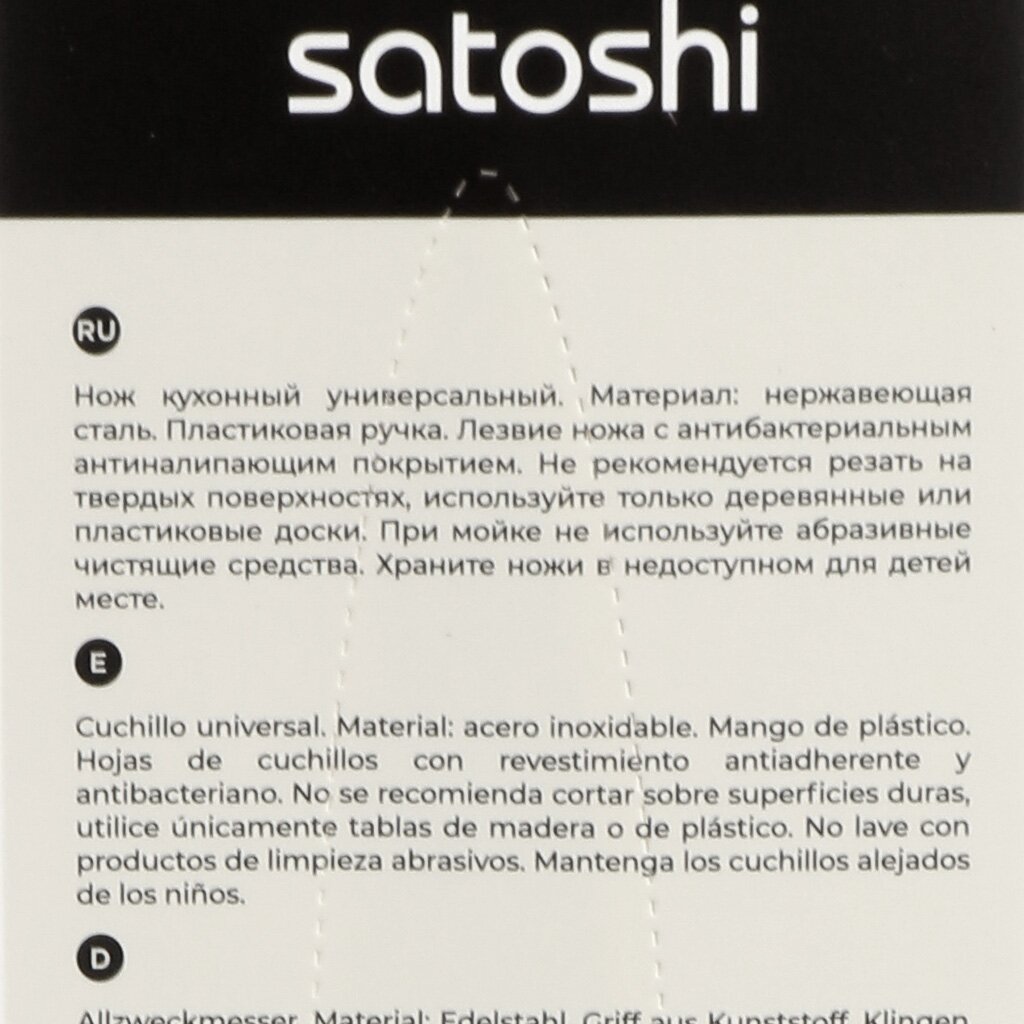 Кухонный нож Satoshi Carbon универсальный — это оптимальный выбор для тех, кто ищет баланс между ценой и качеством. Лезвие из нержавеющей стали устойчиво к коррозии и долго сохраняет остроту даже при частом использовании. Благодаря длине 12,7 см нож удобно использовать для нарезки овощей, фруктов, рыбы и мяса, а пластиковая рукоять обеспечивает надежный хват и легкость ухода.