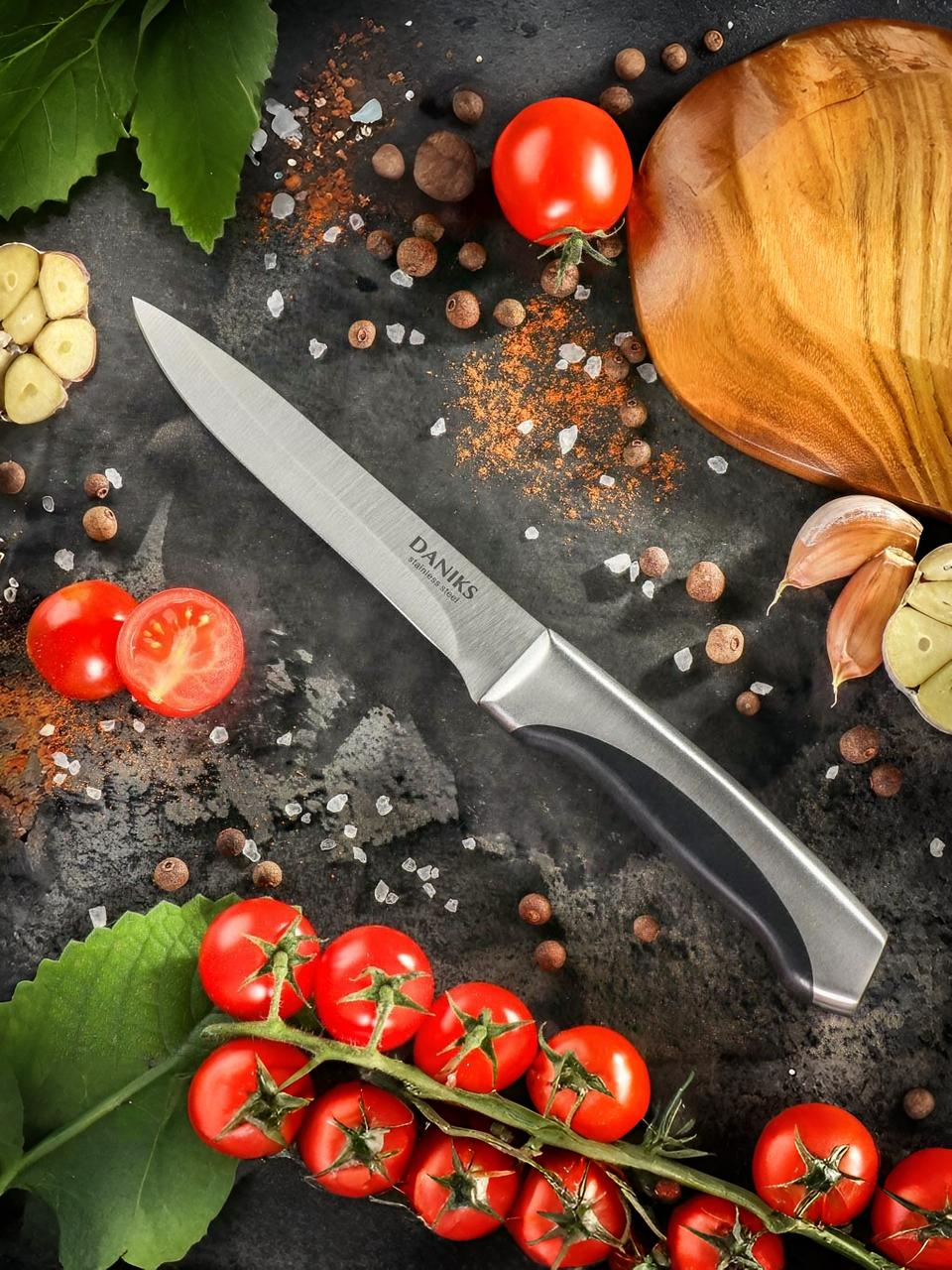 Вы можете приобрести «Нож кухонный Daniks, Мрамор, универсальный, нержавеющая сталь, 12.5 см, рукоятка сталь, YW-A156-UT» и другие товары в нашем интернет-магазине в Орле по низким ценам и с бесплатным самовывозом.