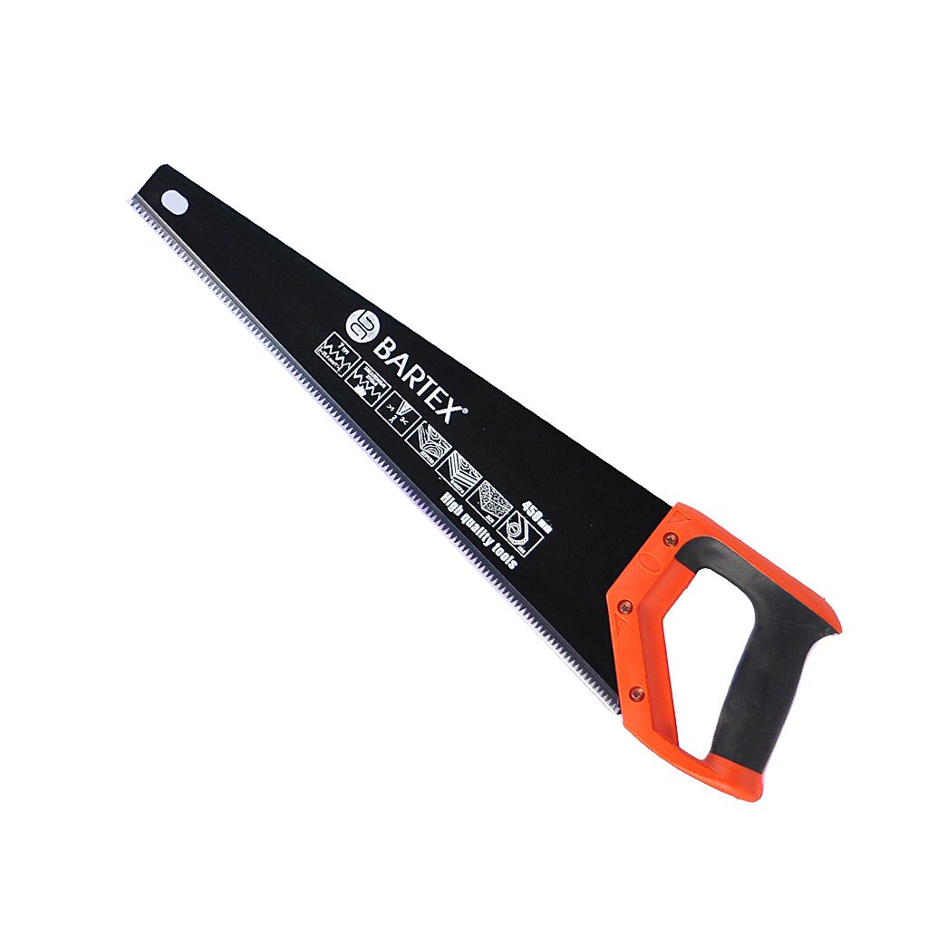Ножовка по дереву Bartex – незаменимый инструмент для владельцев частных домов. Это отличный помощник для поддержания эстетичного вида загородного или приусадебного участка. Благодаря ножовке Bartex уровень Ваших столярных, плотницких или садовых работ станет на порядок выше при тех же временных затратах. Удобная прорезиненная рукоятка не допустит выскальзывания инструмента. Даже спустя продолжительное время работы руки мастера не почувствуют усталости, благодаря комфортному захвату.