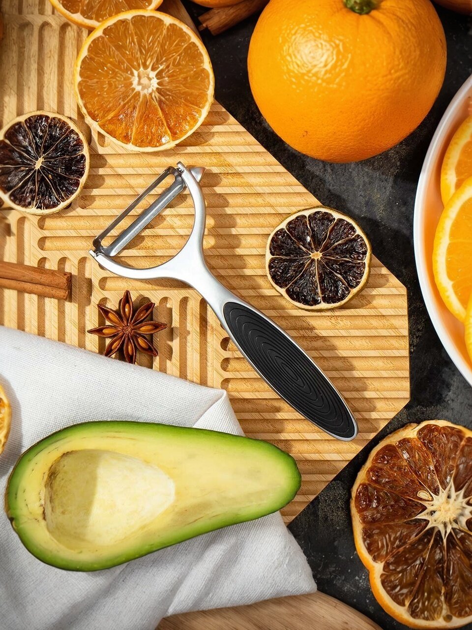 Овощечистка Daniks Laguna – Ваш незаменимый помощник на кухне. Благодаря идеально острому двустороннему лезвию из высококачественной нержавеющей стали она легко справится с любыми овощами и фруктами.