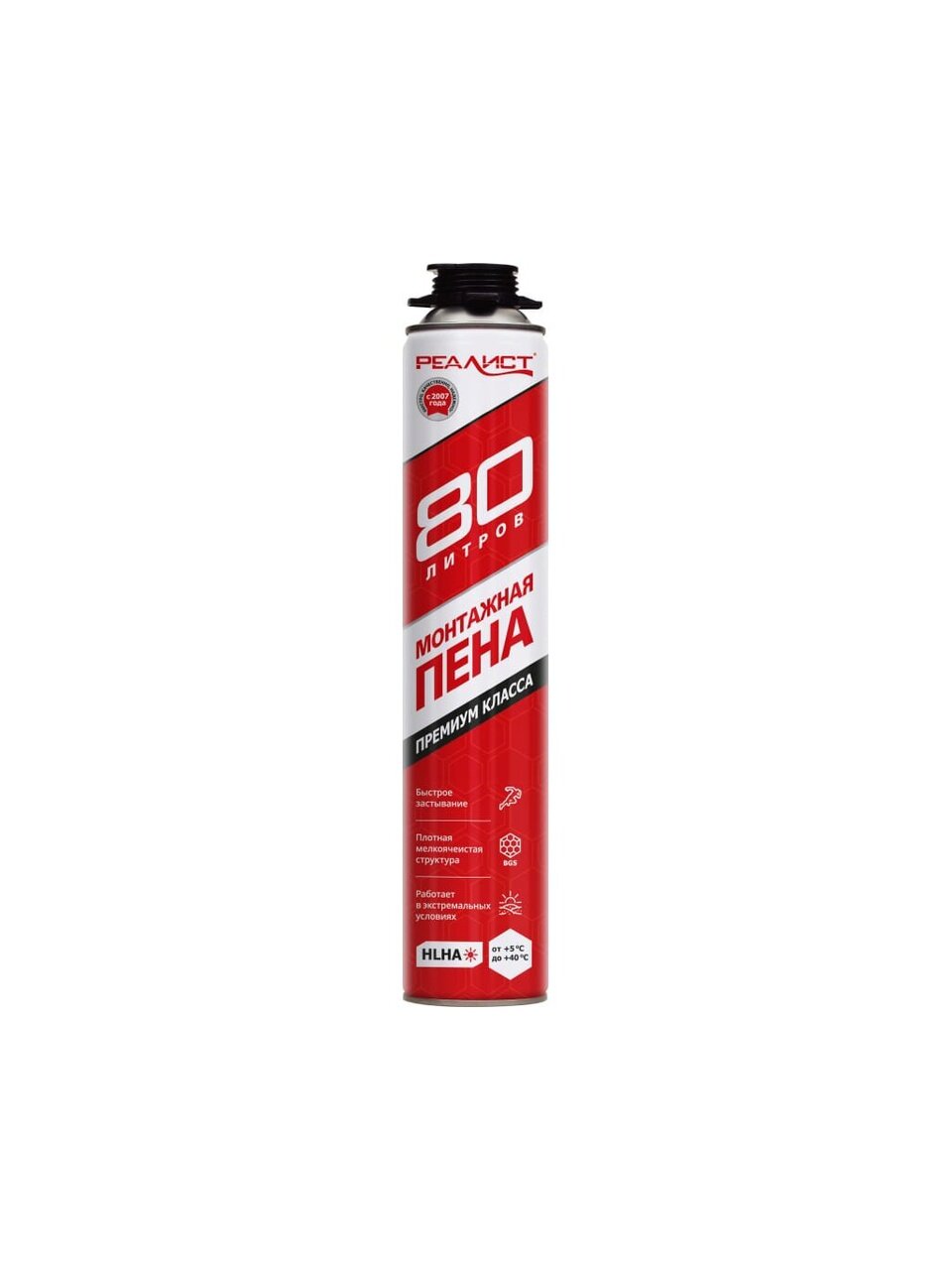 Премиальная монтажная пена нового поколения Realist - это ультра быстрое застывание и высокая производительность. Профессиональная пена, в отличие от бытовой, обеспечивает больший объем выхода и меньшее вторичное расширение. Количественный и качественный состав компонентов пены Realist позволяет ускорить процесс полимеризации (затвердевания), что, в свою очередь, помогает достичь наибольшей деформационной устойчивости и уменьшить воздействие на устанавливаемые конструкции, ускоряет процесс выполнения монтажных работ.
