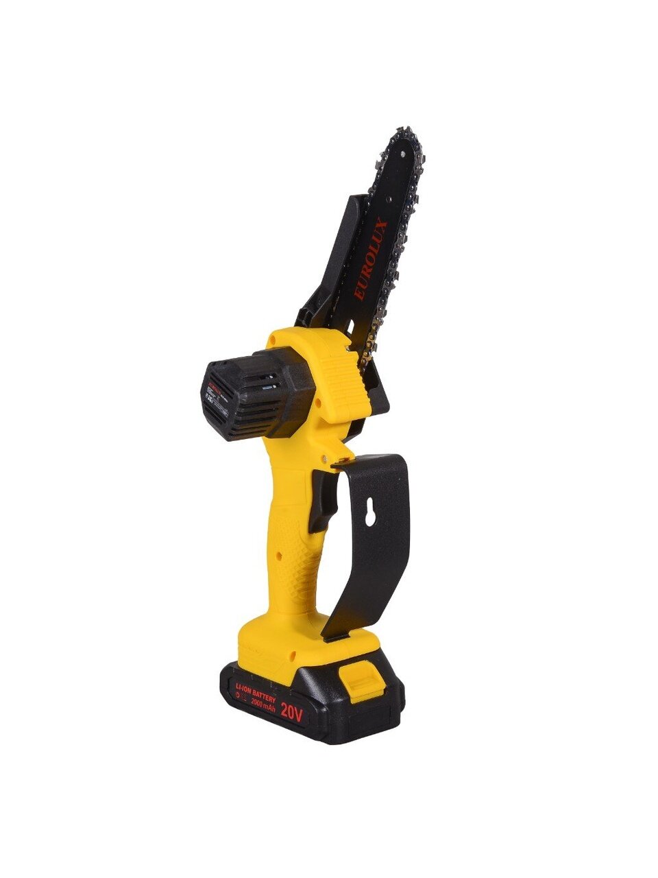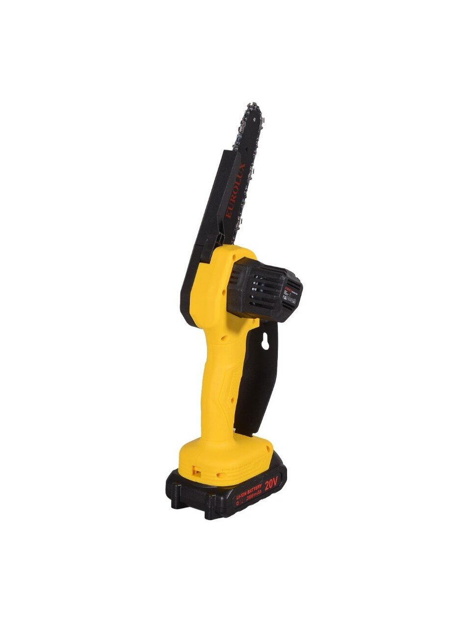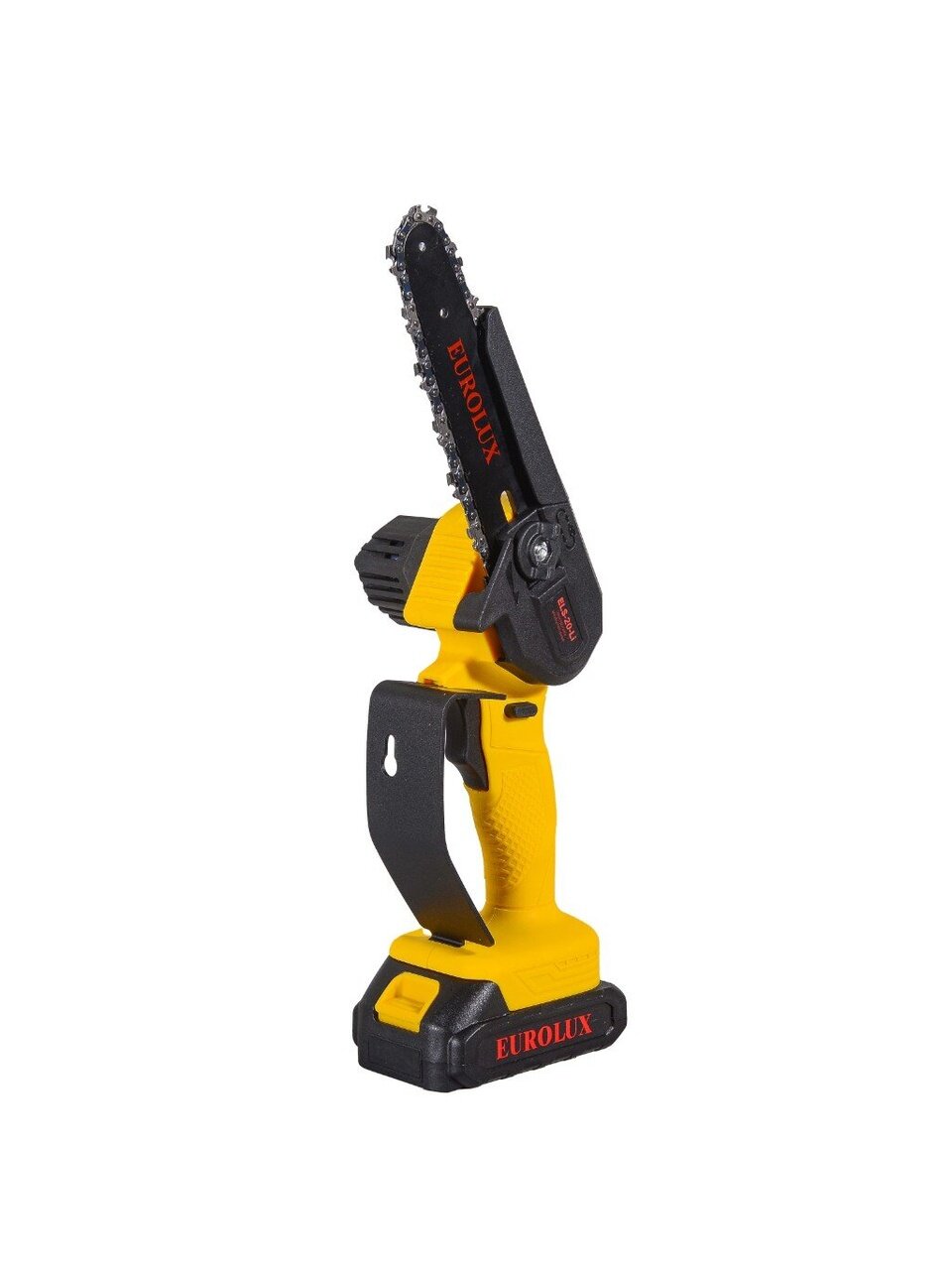 Вы можете приобрести «Пила цепная электрическая, аккумуляторная, Eurolux, длина шины 15 см, шаг цепи 1/4 дюйм, 36 звеньев, ELS-20-Li, 20 В, АКБ 2Ач+ЗУ, 70/10/56» и другие товары в нашем интернет-магазине в Твери по низким ценам и с бесплатным самовывозом.