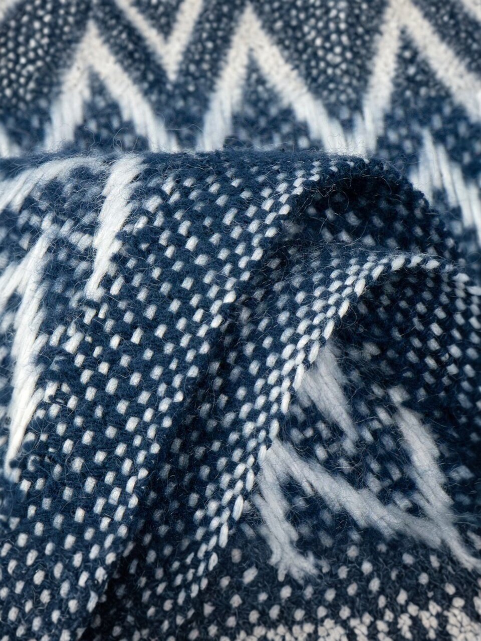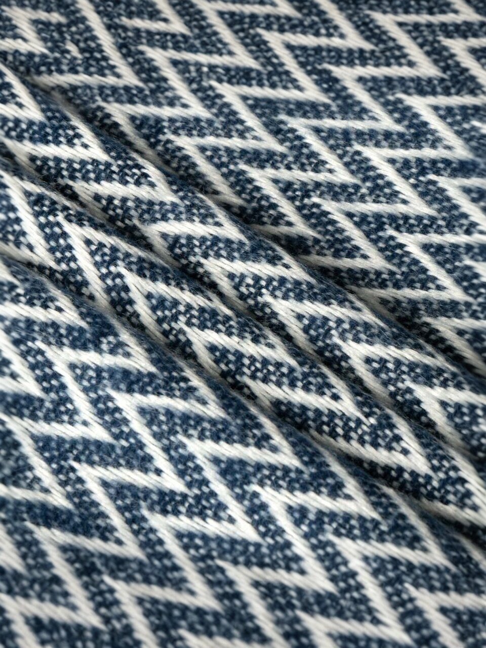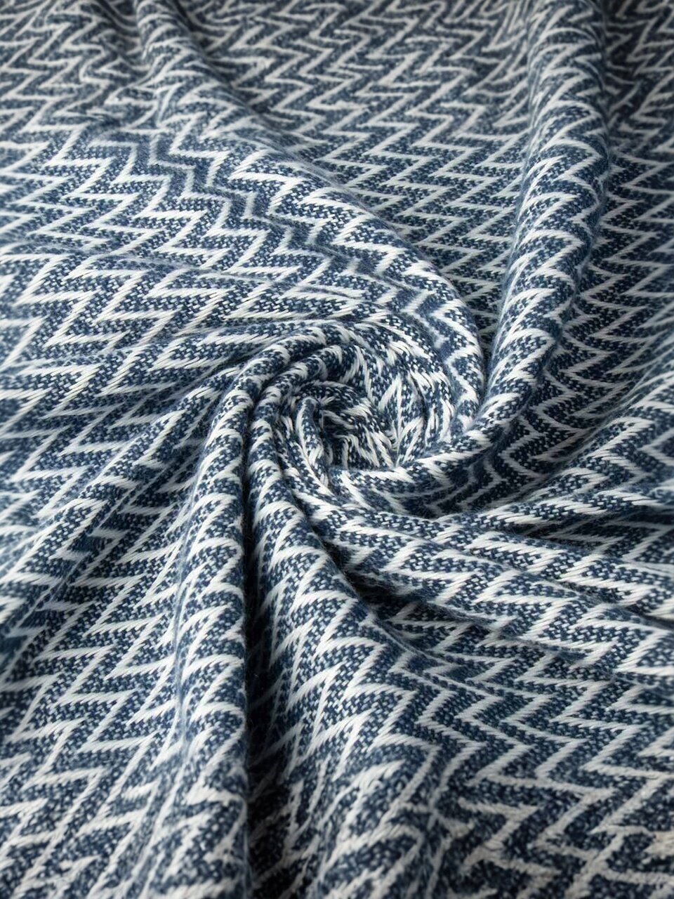 - Двухсторонний дизайн: бело-синий орнамент «зигзаг» легко впишется в любой интерьер