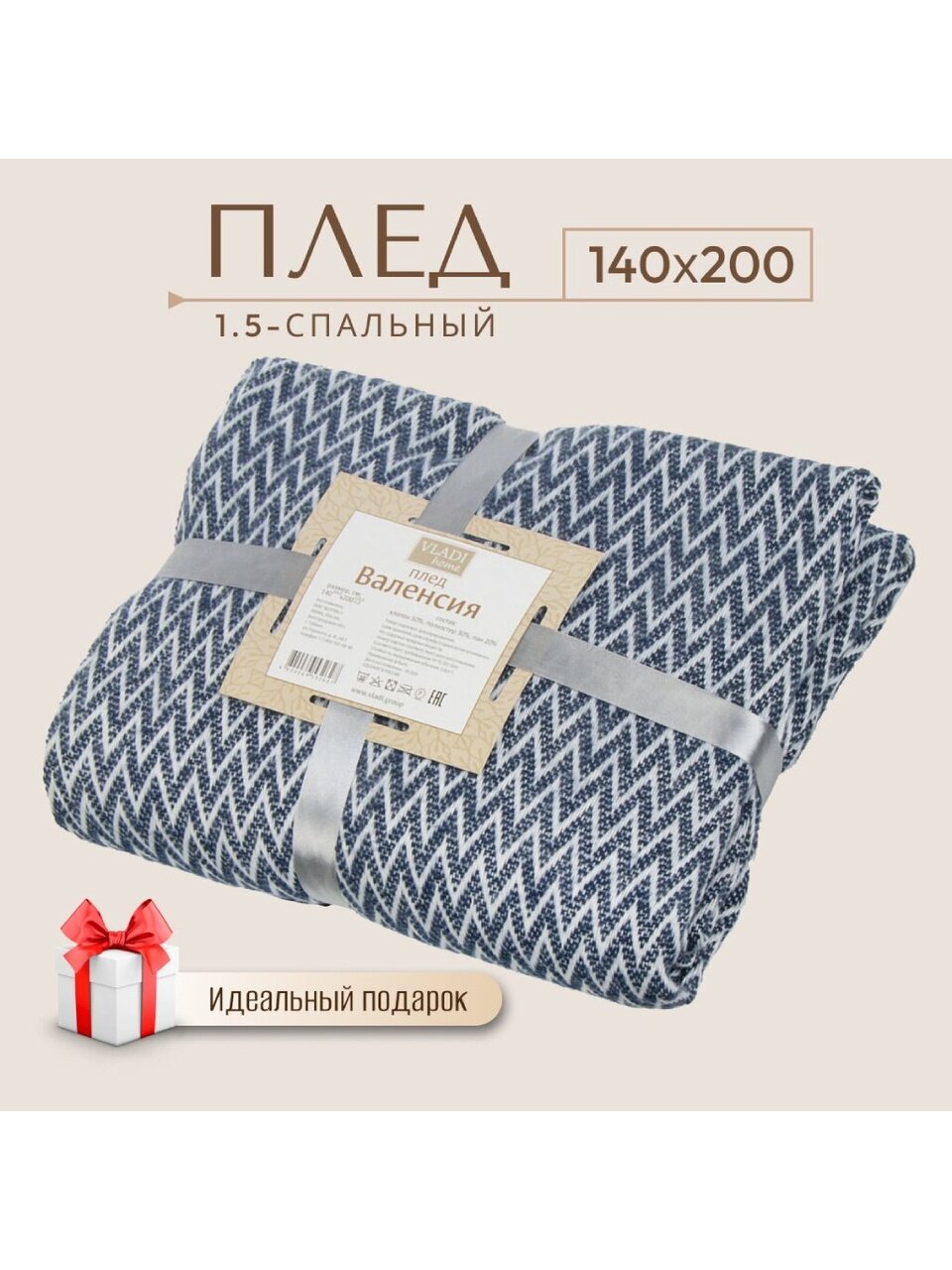 Плед Vladi Валенсия Антонио 1.5-спальный (140х200 см) — это удачный выбор для тех, кто ищет недорогой и долговечный плед для дома, дачи или пикника. Благодаря комбинированному составу (50% хлопок, 30% полиэстер, 20% ПАН), изделие сочетает в себе мягкость натуральных волокон и износостойкость синтетики. Такой плед не скатывается, не выцветает и легко переносит стирку при 30–40°C, что особенно важно для ежедневного использования.