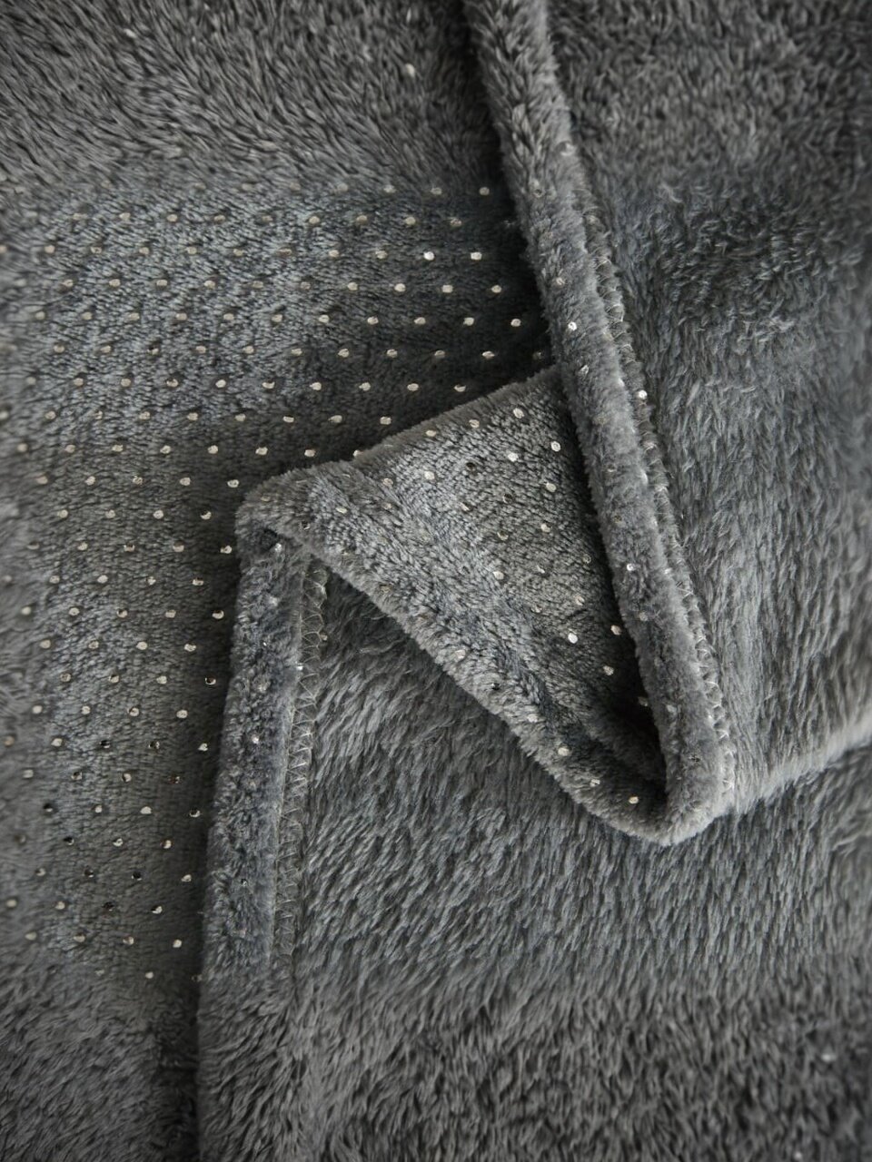 - Универсальный дизайн: серый плед — идеальный вариант для дома, дачи или подарка на любой случай