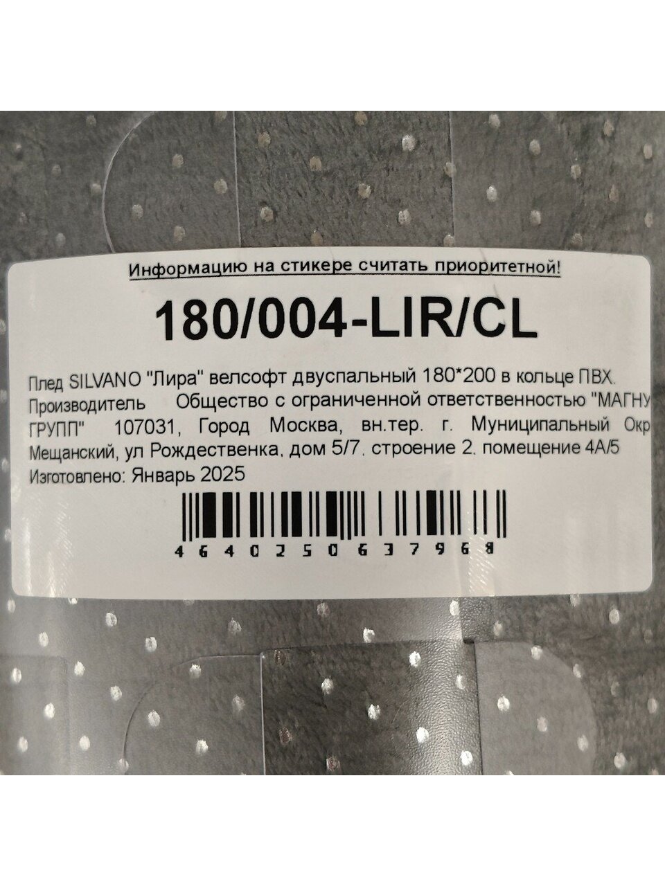 Двуспальный плед Silvano Лира 180х200 см: мягкий велсофт жаккард, уют для дома и дачи, практичный уход, доступная цена — комфорт круглый год.