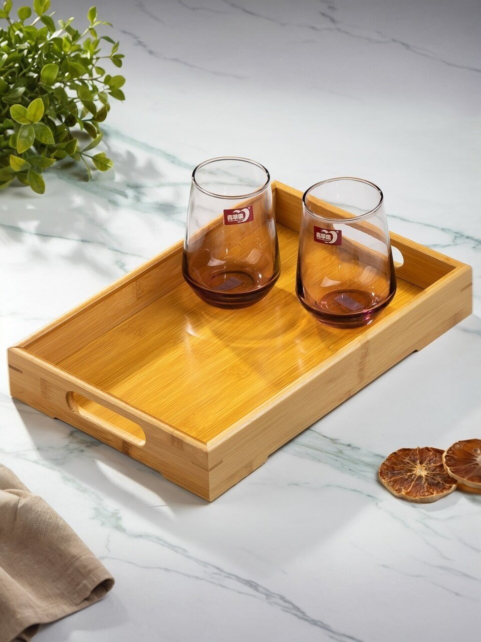 Поднос - это функциональный и стильный аксессуар для сервировки стола и стилизации домашнего пространства. Бамбук - это природный экологичный материал. Подносы можно использовать в качестве подставки под горячее. Они не боятся высоких температур.