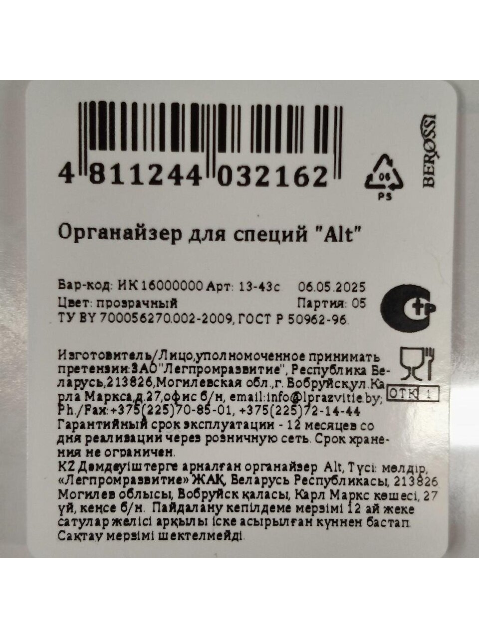 Вы можете приобрести «Подставка для специй, пластик, 17х14.9х13.2 см, прозрачная, Berossi, Alt, ИК 16000000» и другие товары в нашем интернет-магазине в Липецке по низким ценам и с бесплатным самовывозом.