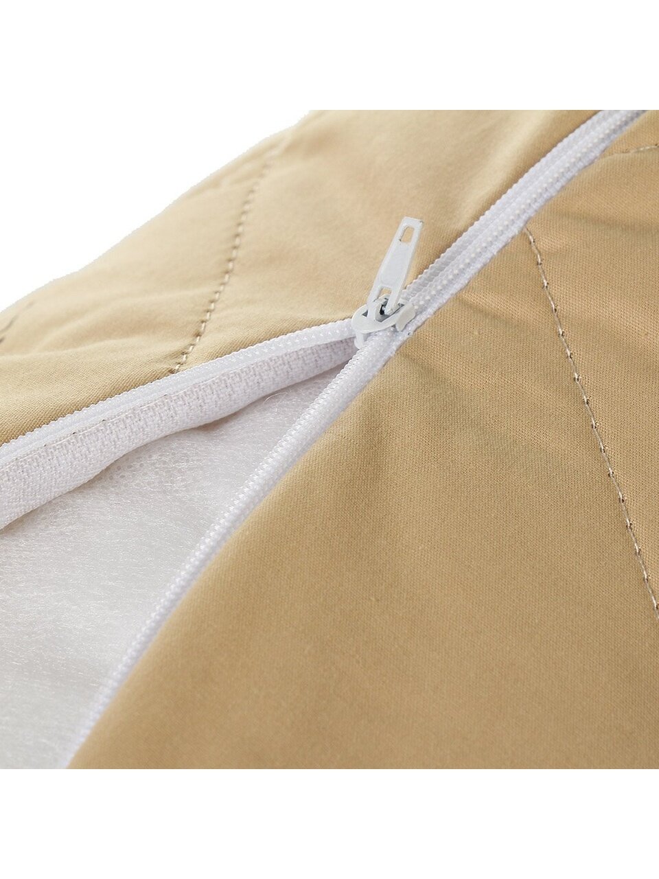 Внутри используется 100% полиэстер с добавлением верблюжьей шерсти, что обеспечивает упругость и долговечность. Чехол выполнен из 100% хлопка, есть окантовка и съемный чехол на молнии.