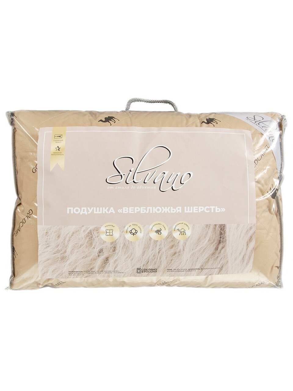 Подушка 50х70 см Silvano: оптимальный размер, верблюжья шерсть и хлопковый чехол для комфортного сна дома и на даче. Ощутите разницу уже этой ночью!