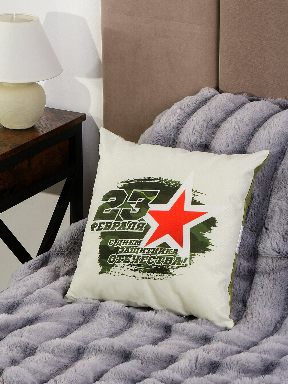 Подушка декоративная 40х40 см к 23 Февраля: стильный подарок для мужчин, уют в интерьере, гипоаллергенный полиэстер, выгодная цена.