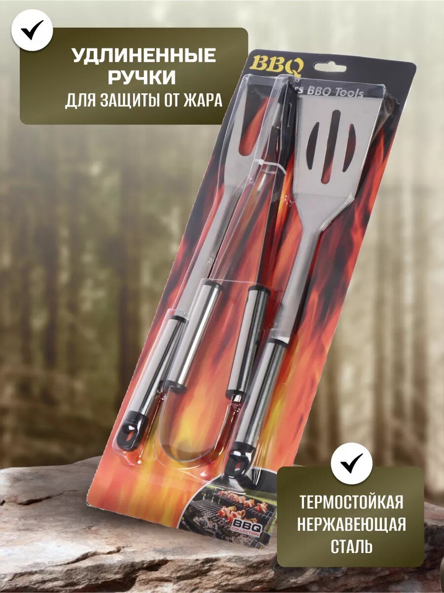 - Состав набора: лопатка, щипцы, вилка для гриля.