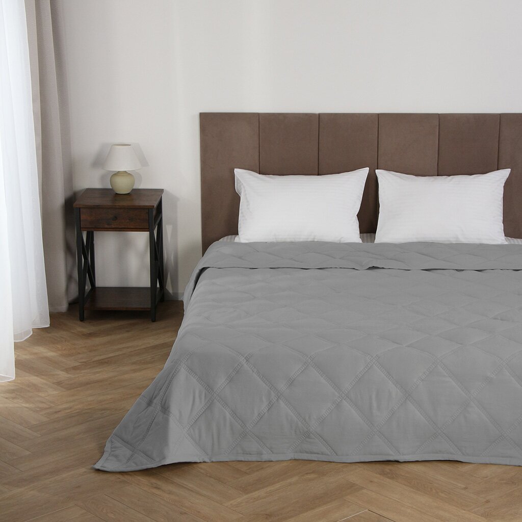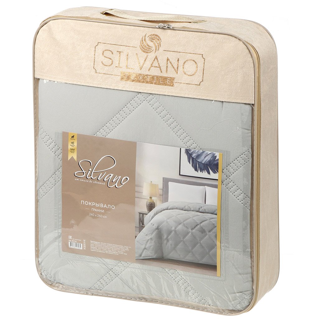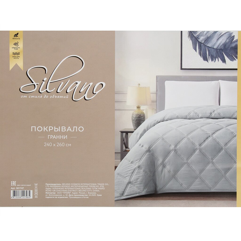 Покрывало евро 240х260 см Silvano Гранни светло-серое — стильная защита и уют для вашей кровати: долговечный полиэстер, минималистичный дизайн, идеальный размер для спальни и гостиной.