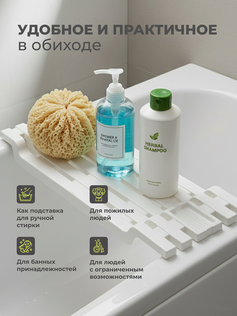 Полка для ванной помогает поддерживать порядок, освобождая пространство на раковине и в шкафах. Благодаря грамотной организации хранения удается сэкономить время на поиске нужных предметов, а также создать уютную атмосферу уюта и чистоты. Белый цвет визуально расширяет пространство, делая ванную комнату светлее и просторнее. Прямой ярус позволяет удобно расставить все необходимое, что особенно актуально для семей с детьми или для тех, кто ценит порядок и функциональность.