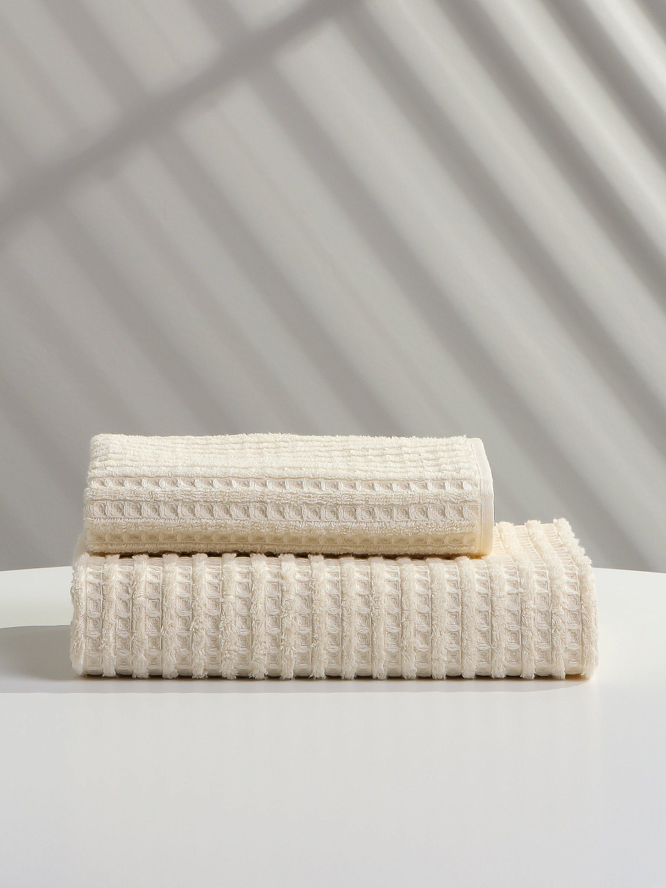 - Рельефная вафельная фактура — быстро впитывает влагу, обеспечивает мягкость и массажный эффект.
