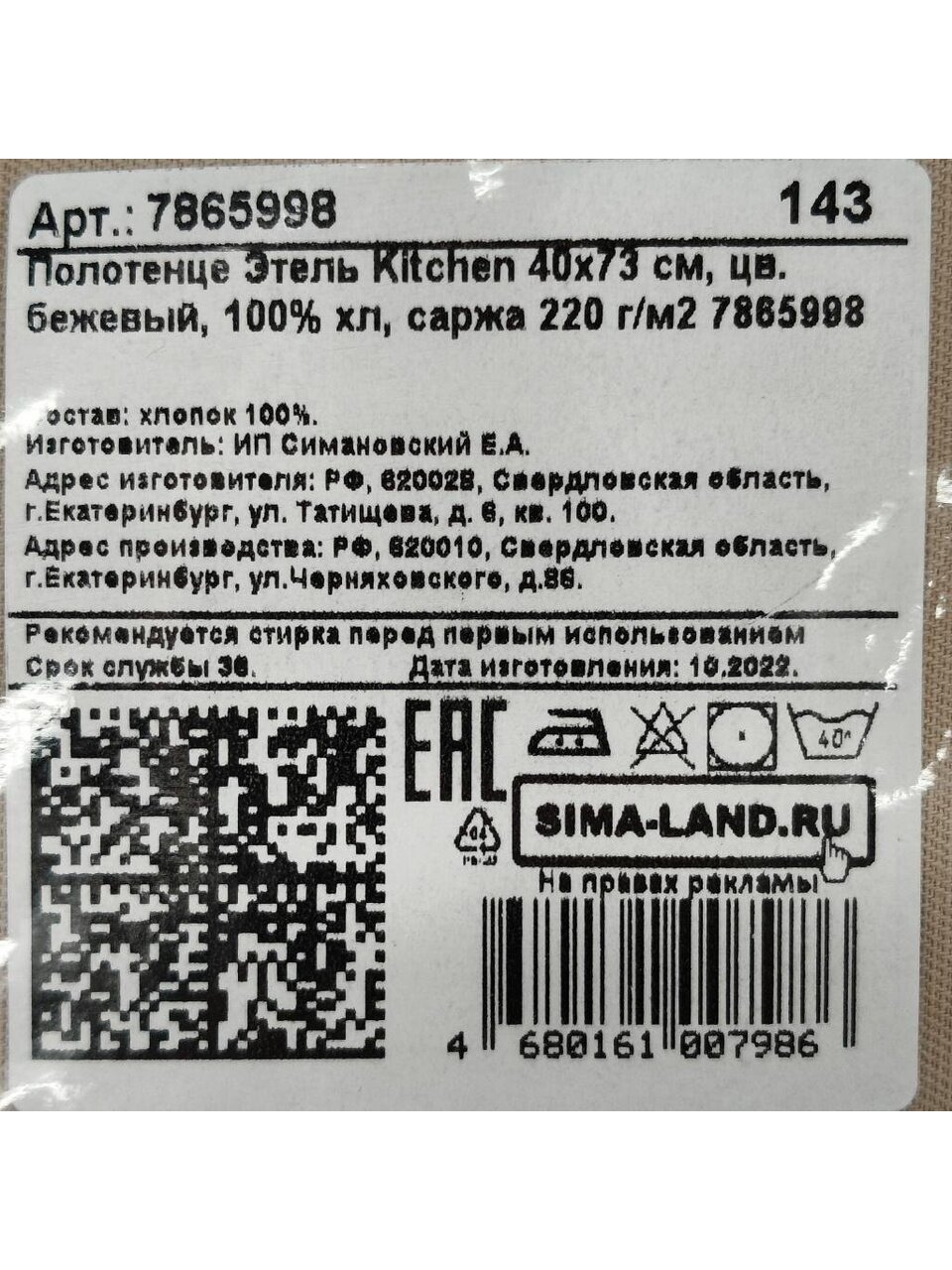 Вы можете приобрести «Полотенце кухонное 40х73 см, 100% хлопок, саржа, Этель, Kitchen, бежевое, Россия» и другие товары в нашем интернет-магазине в Обнинске по низким ценам и с бесплатным самовывозом.