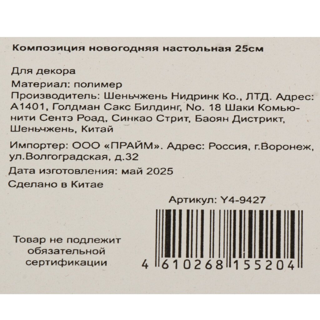 Какой размер у новогодней настольной композиции Y4-9427?