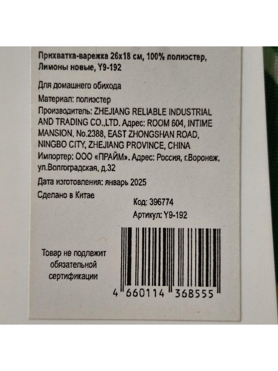 Вы можете приобрести «Прихватка-варежка 26х18 см, 100% полиэстер, Лимоны новые, Y9-192» и другие товары в нашем интернет-магазине в Таганроге по низким ценам и с бесплатным самовывозом.