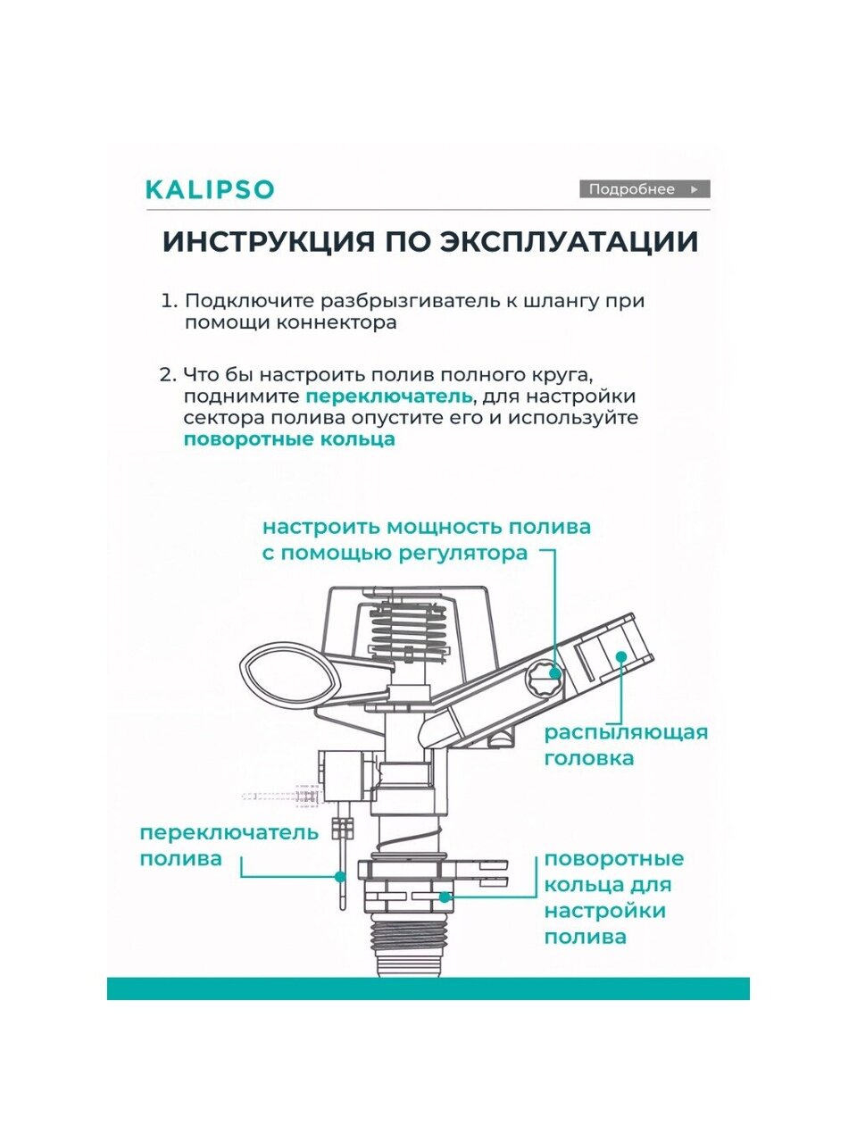 Kalipso – бренд, который выбирают за сочетание качества, функциональности и выгодной стоимости. Разбрызгиватель подходит для использования как на приусадебных участках, так и в садовых хозяйствах, обеспечивая стабильный результат без лишних затрат времени и сил.