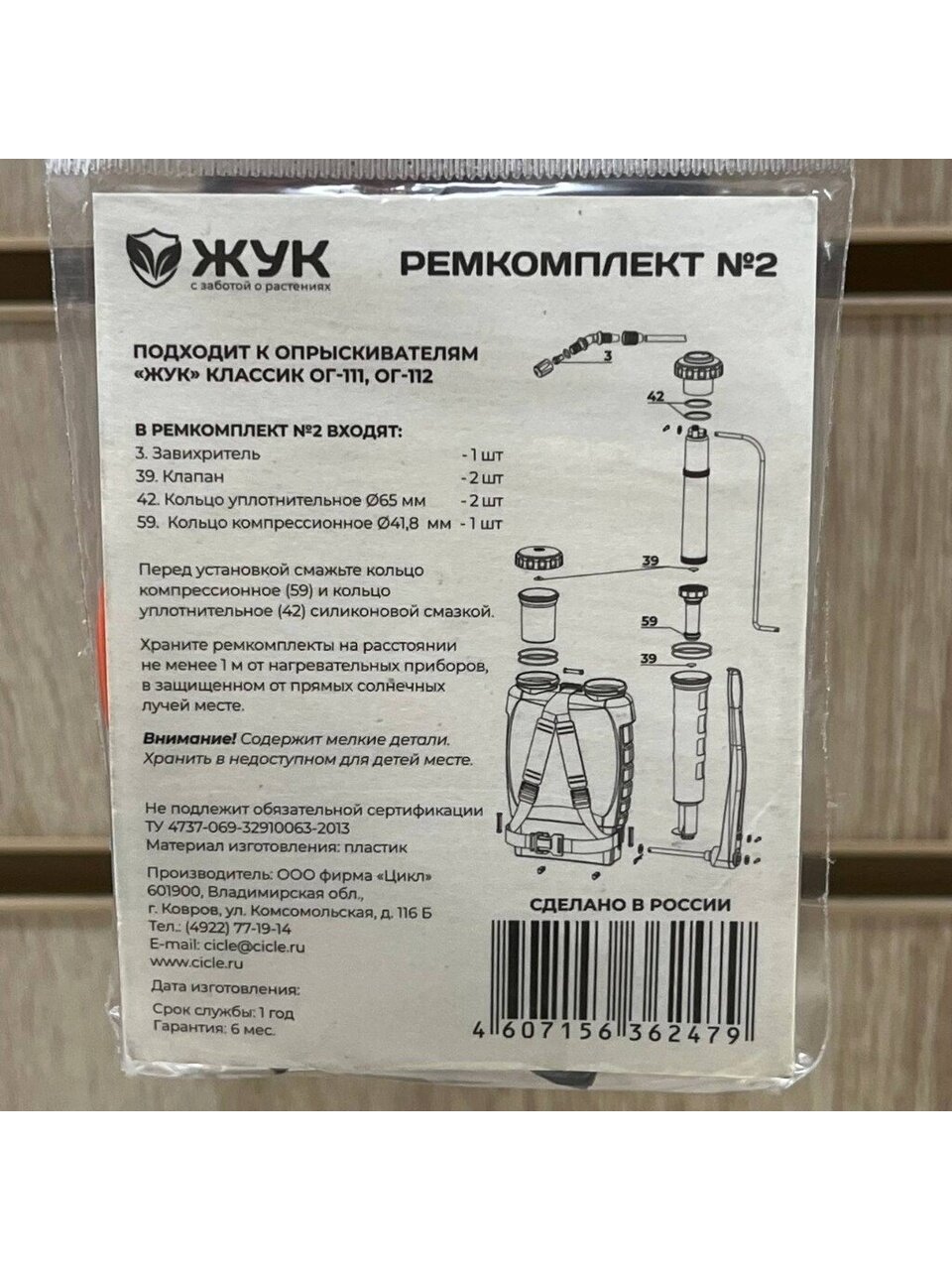 Ремкомплект для опрыскивателя ОГ-111, ОГ-112, Жук, №2, 479-00 — надежное решение для быстрого восстановления работоспособности опрыскивателя. Комплект идеально подходит для моделей ОГ-111 и ОГ-112, обеспечивая долгий срок службы садовой техники. Покупка ремкомплекта позволяет сэкономить время и средства на ремонте, поддерживать высокую эффективность опрыскивания.