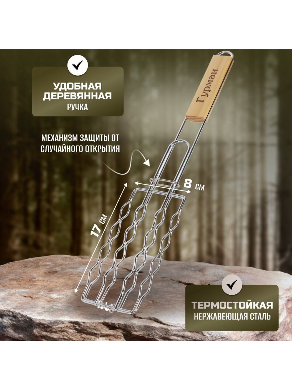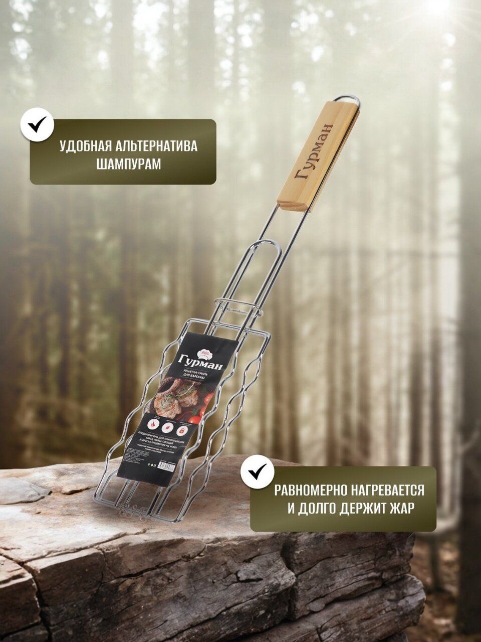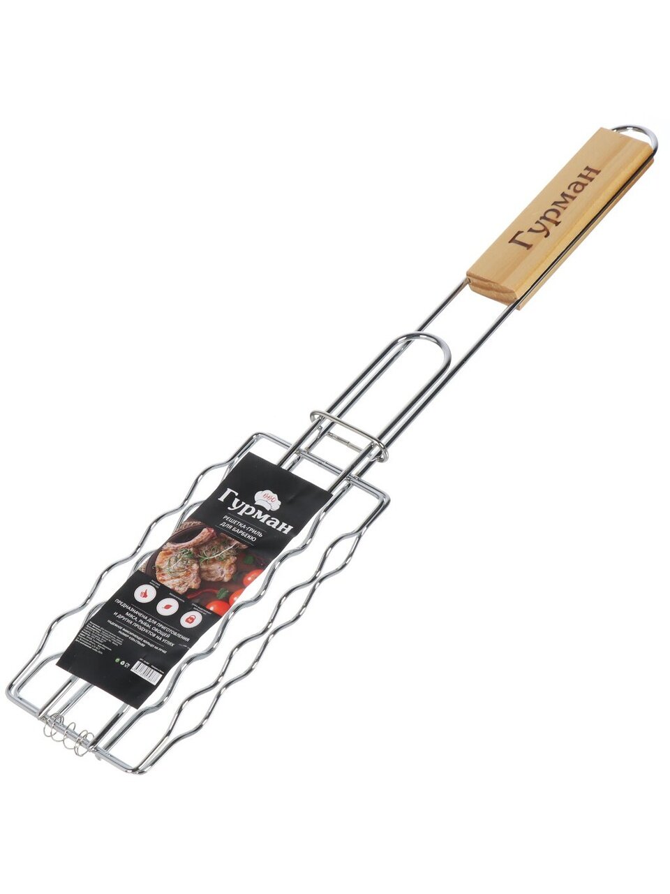 Решетка для барбекю Гурман повысит уровень Вашего комфорта на природе. Длинная ручка обеспечит безопасное взаимодействие с продуктами на огне и не позволит обжечься. Компактный размер позволит Вам удобно разместить аксессуар в шкафу для кухонной утвари или в багажнике автомобиля.