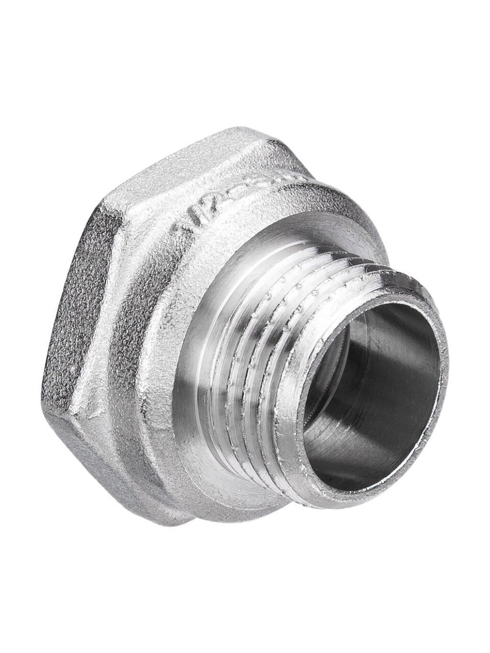 Переходник оснащён наружной резьбой 1/2" и внутренней резьбой 3/4", что обеспечивает универсальное соединение труб и фитингов разных диаметров.